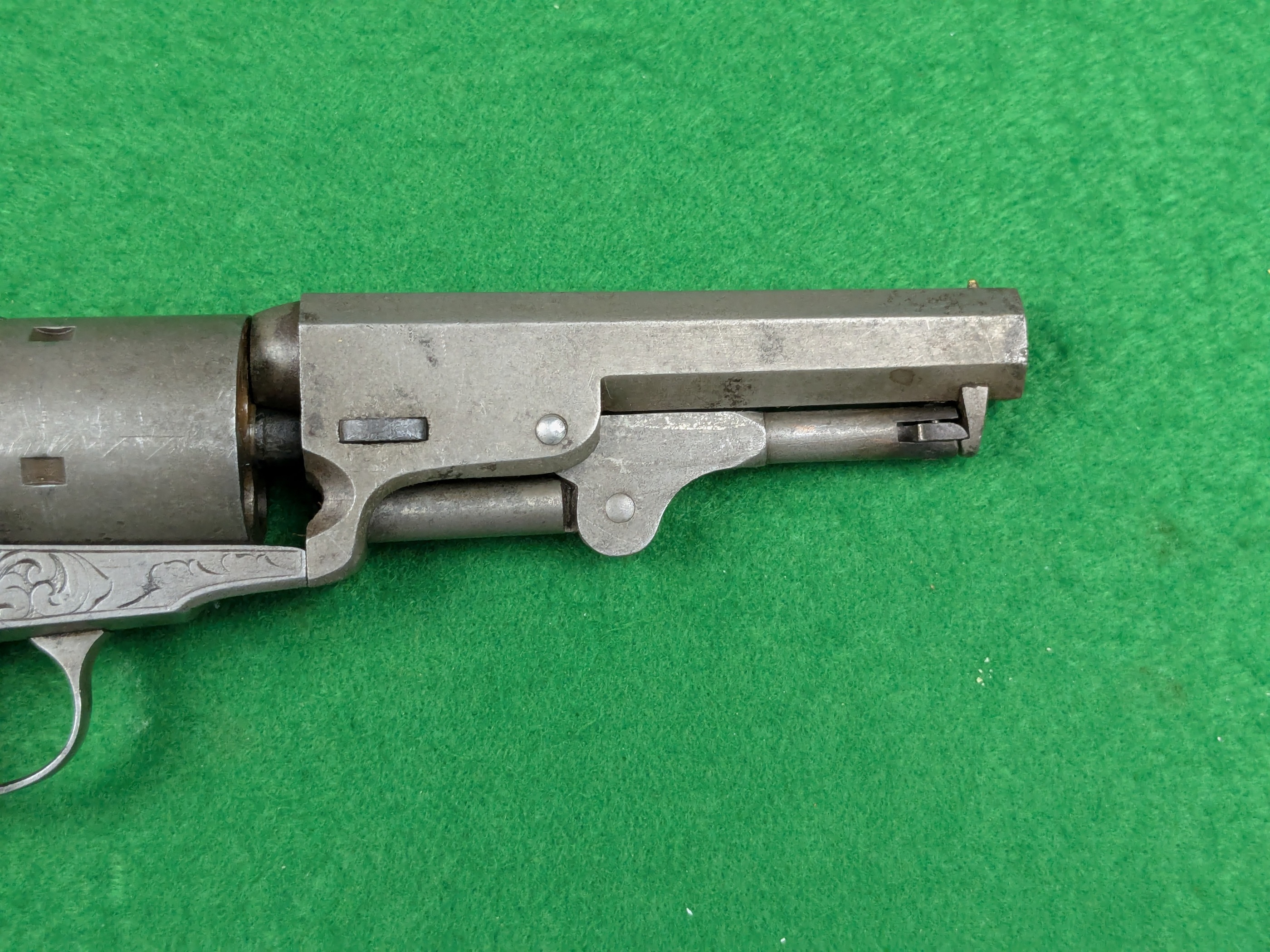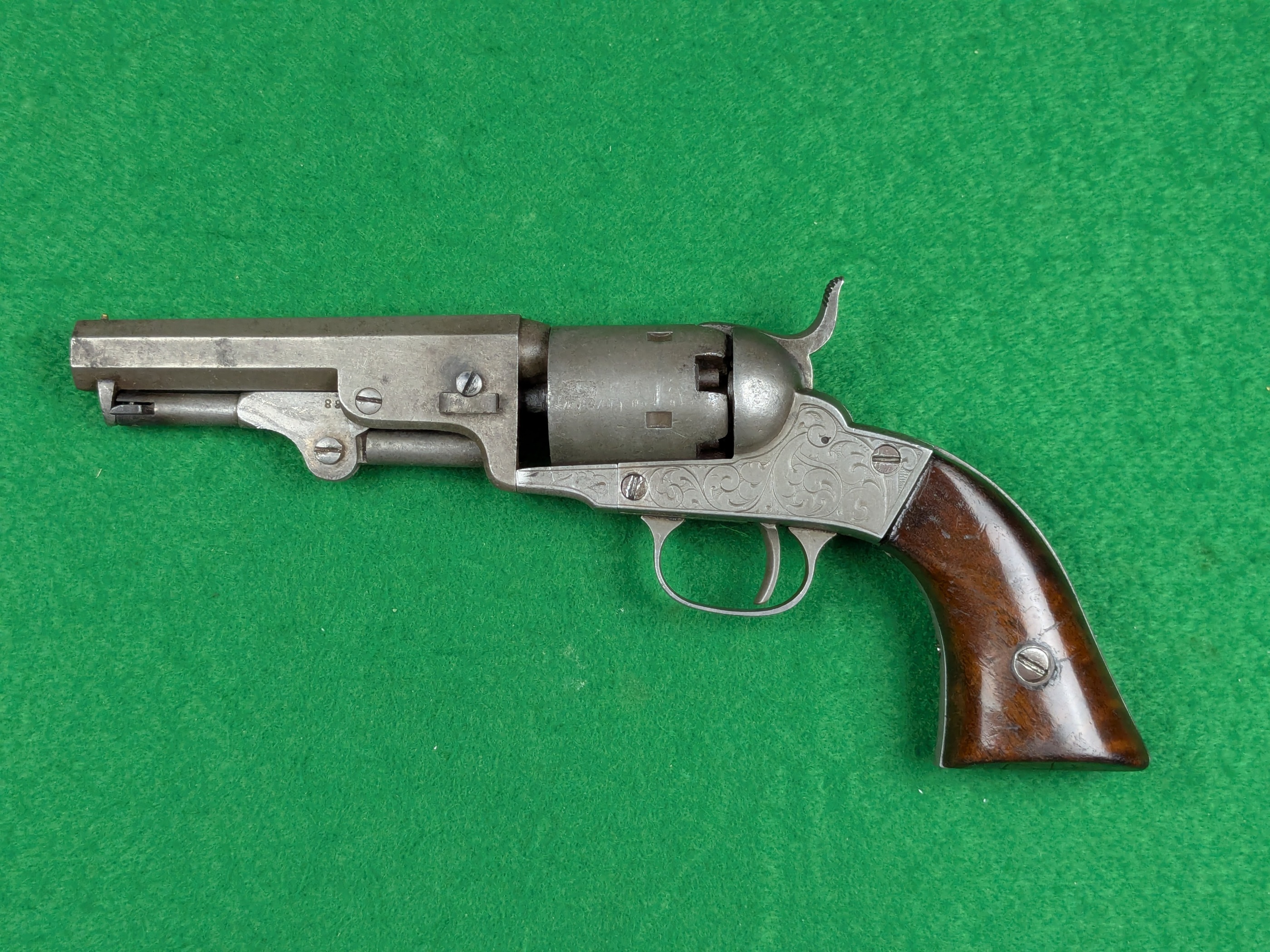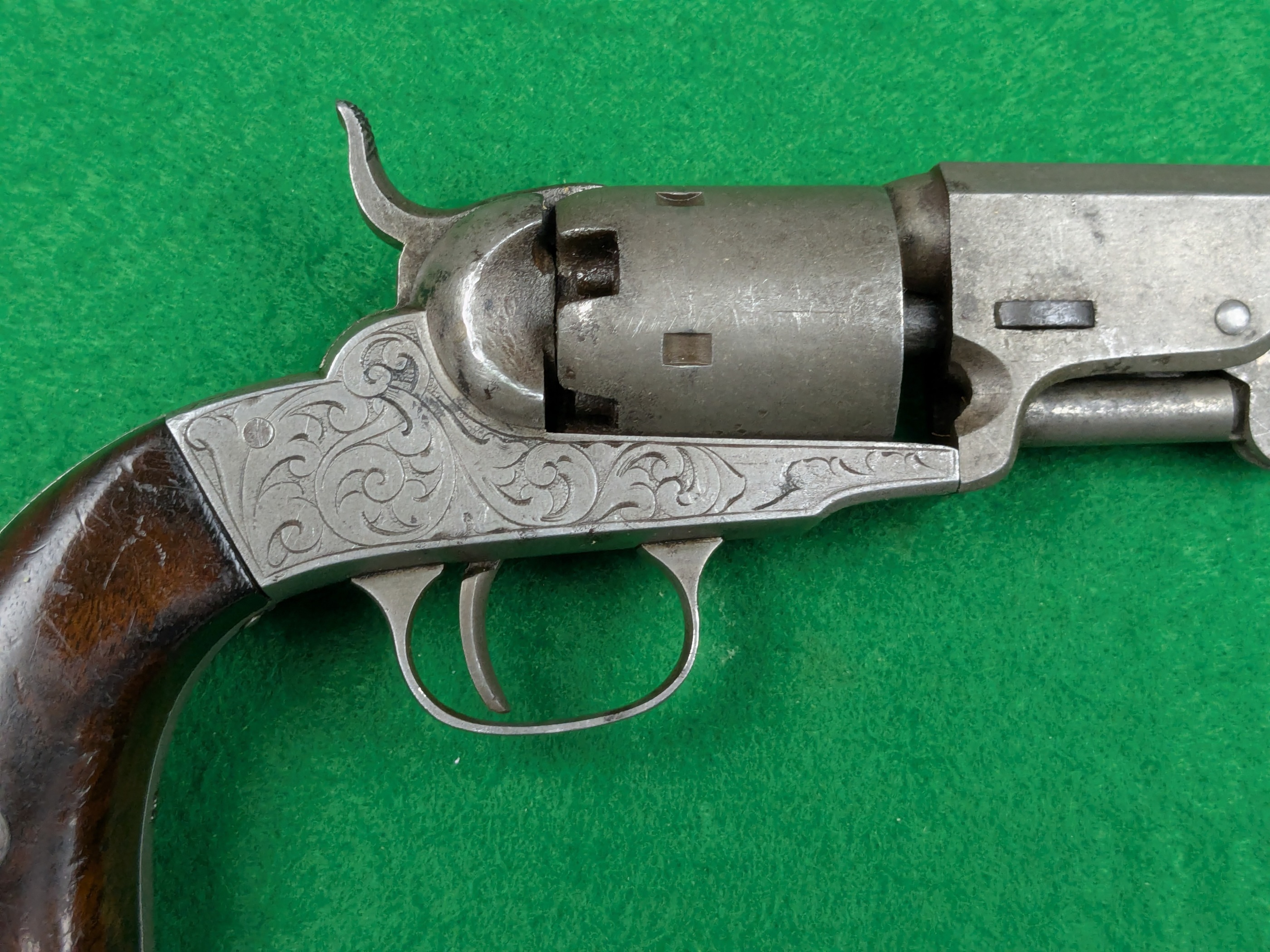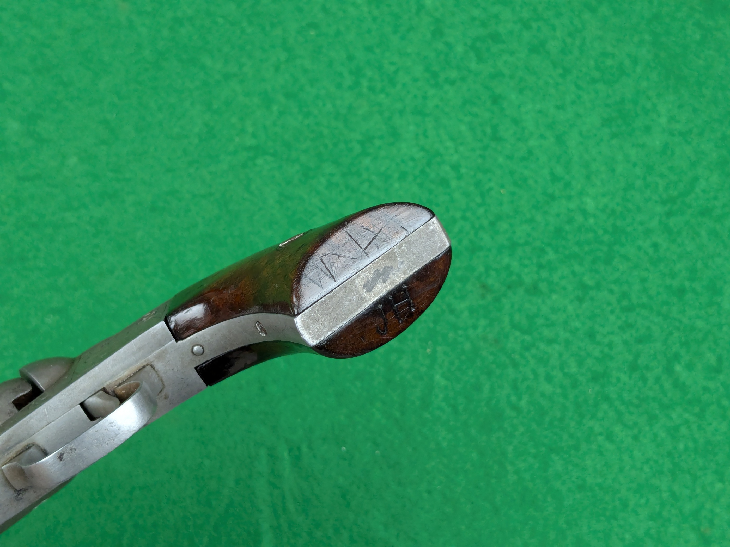 Pipans längd på exemplaret är 4". Trumma för fem skott i kaliber .31". Single-action.