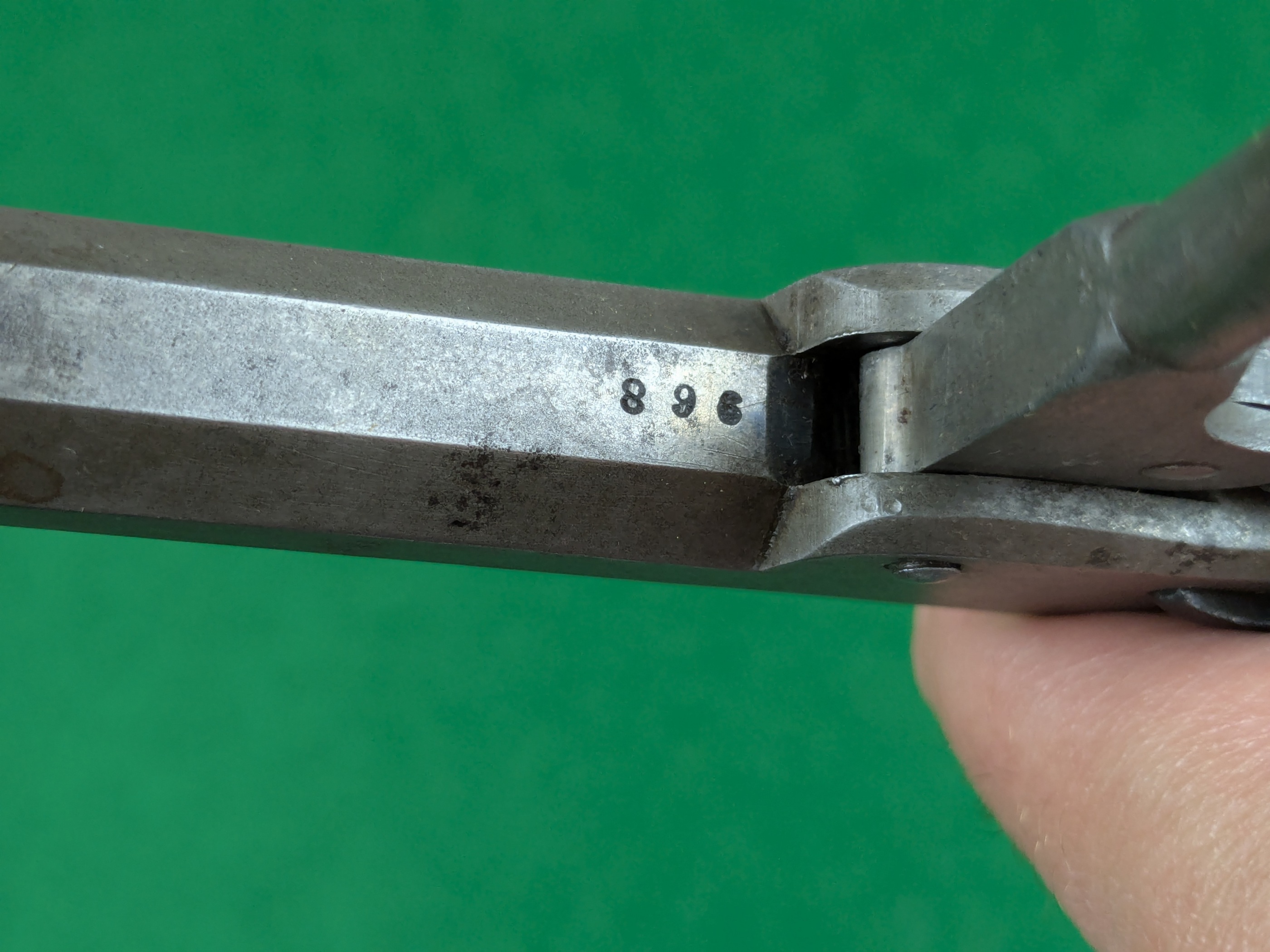 Märkt med batch-serienummer. Låga tusentalet revolvrar antas ha tillverkats av detta utförande, som är det första.