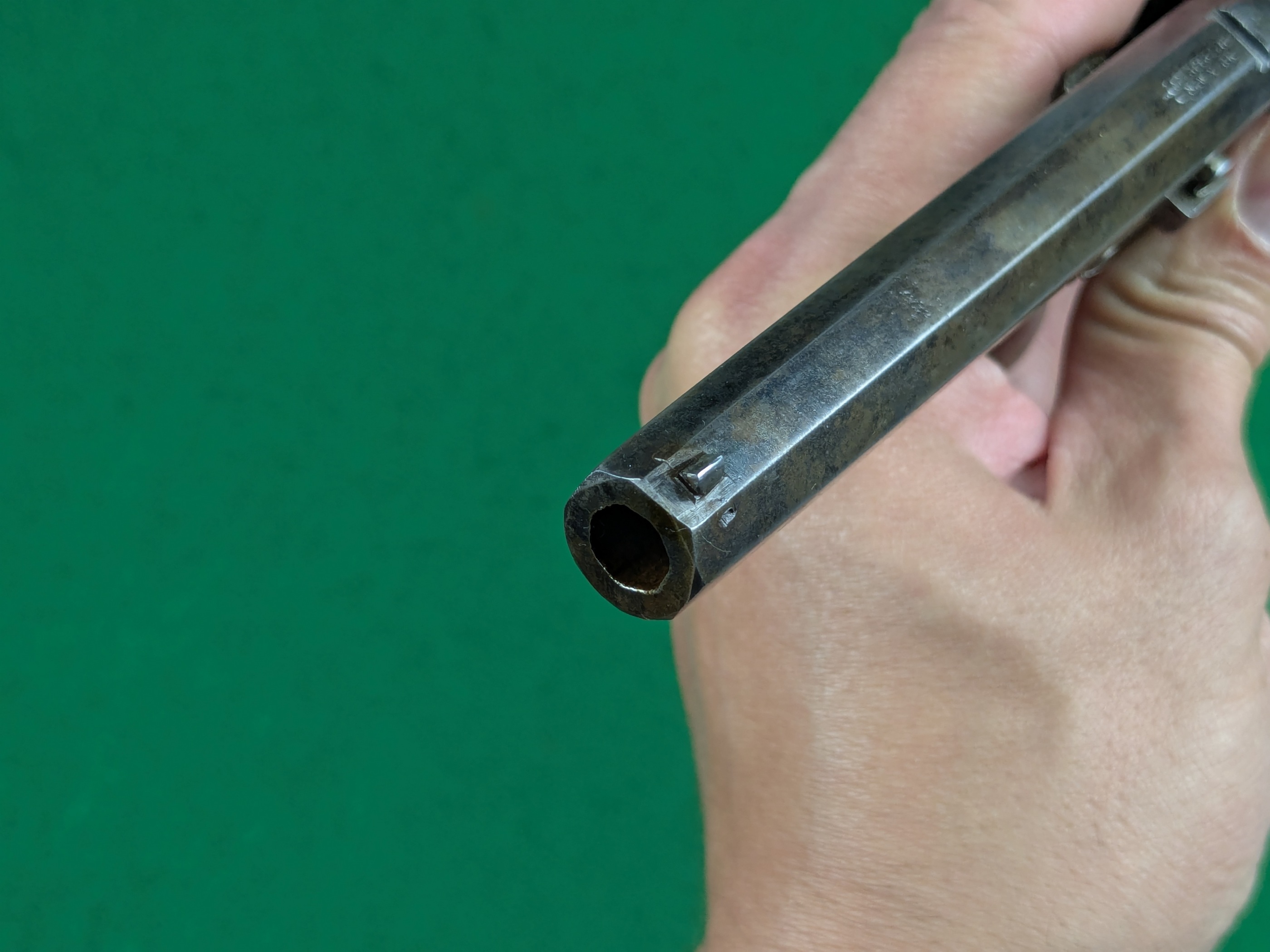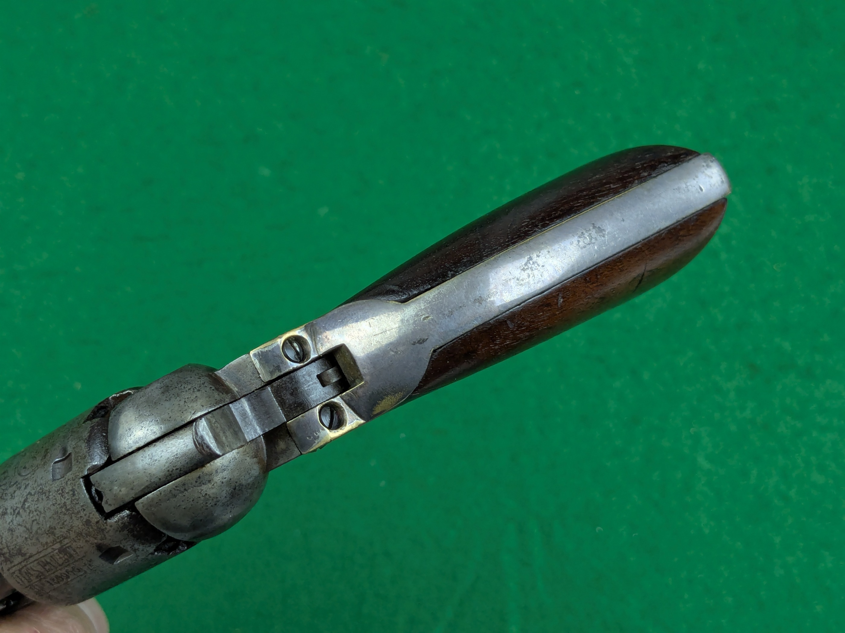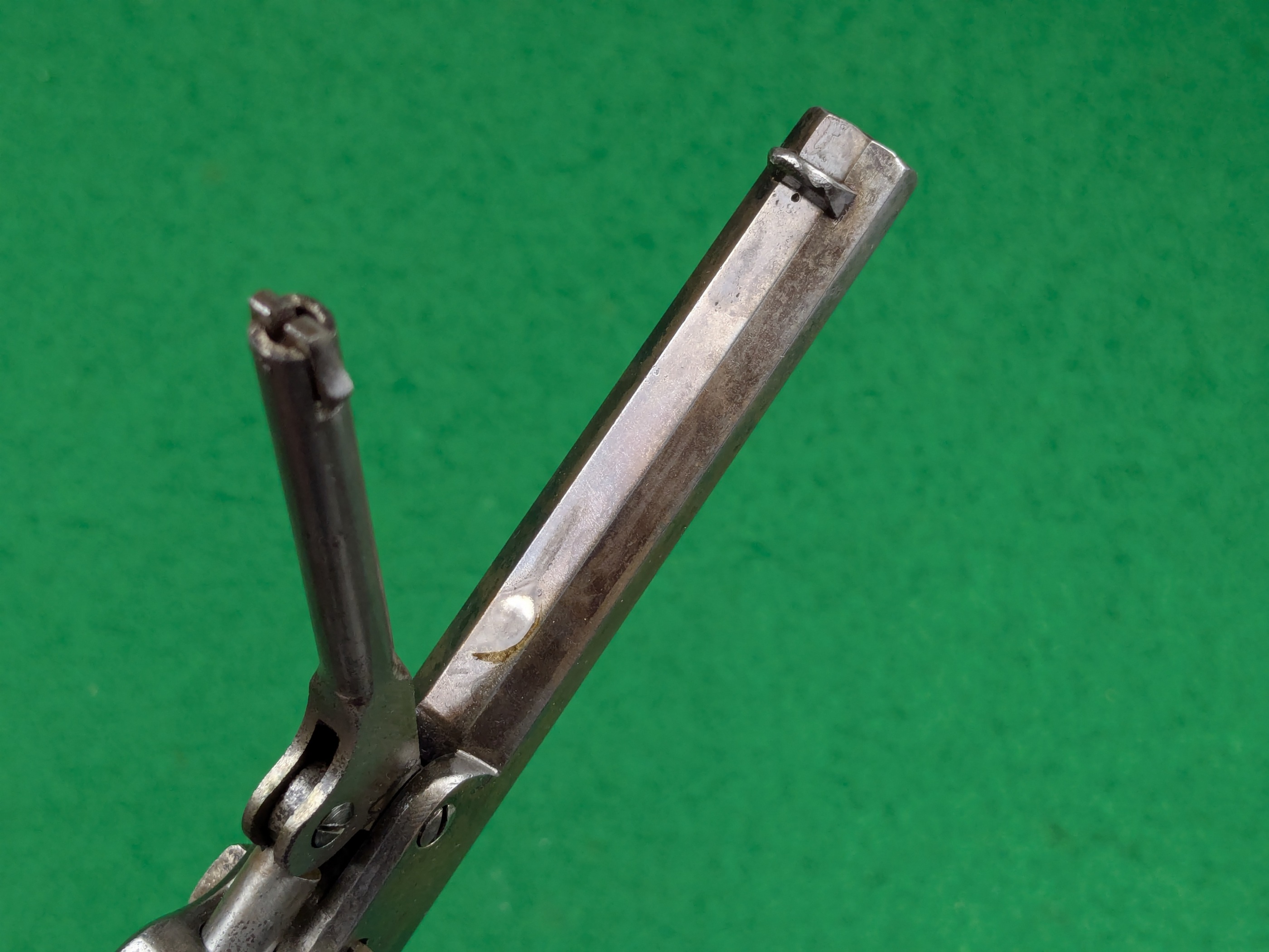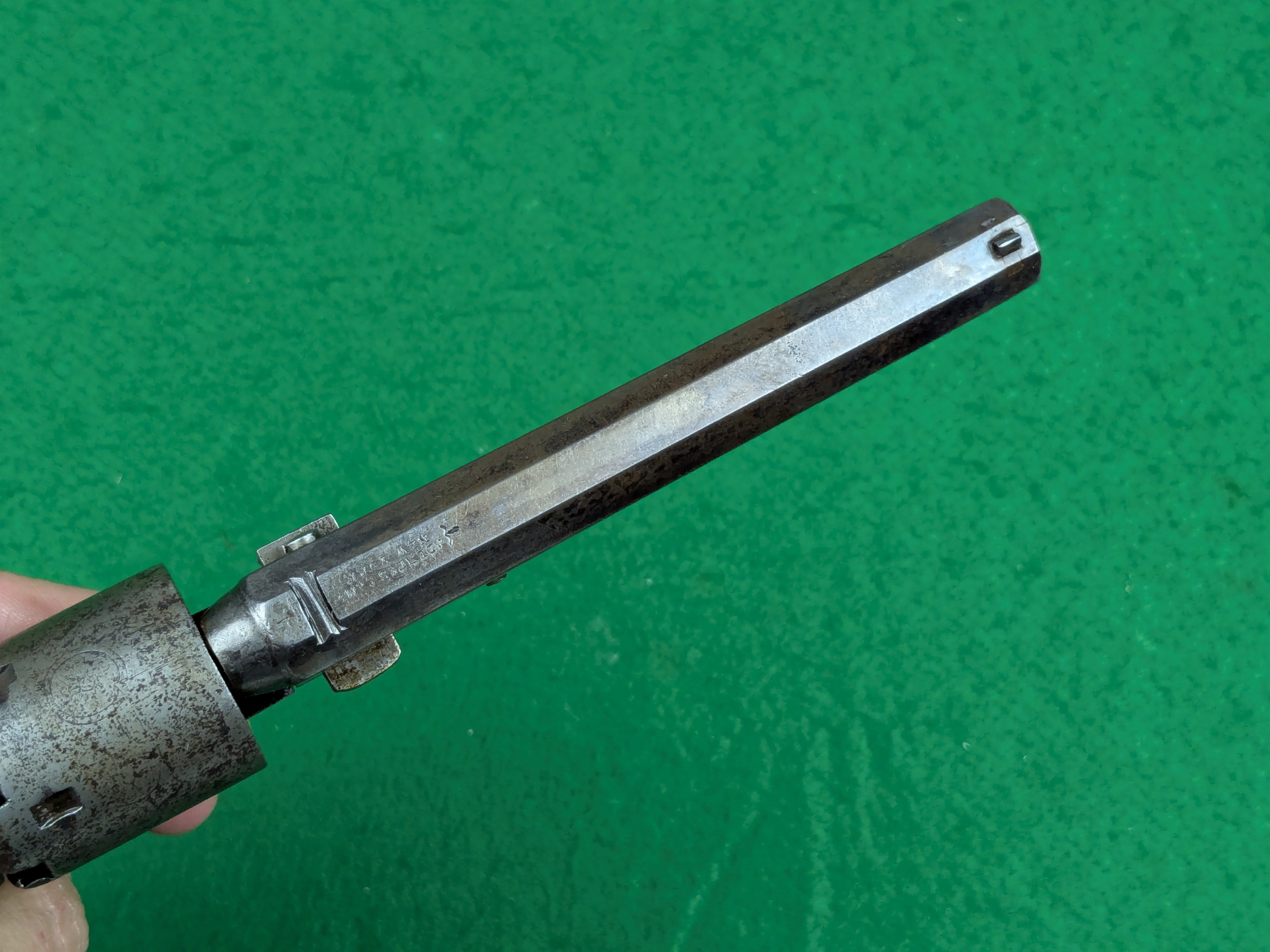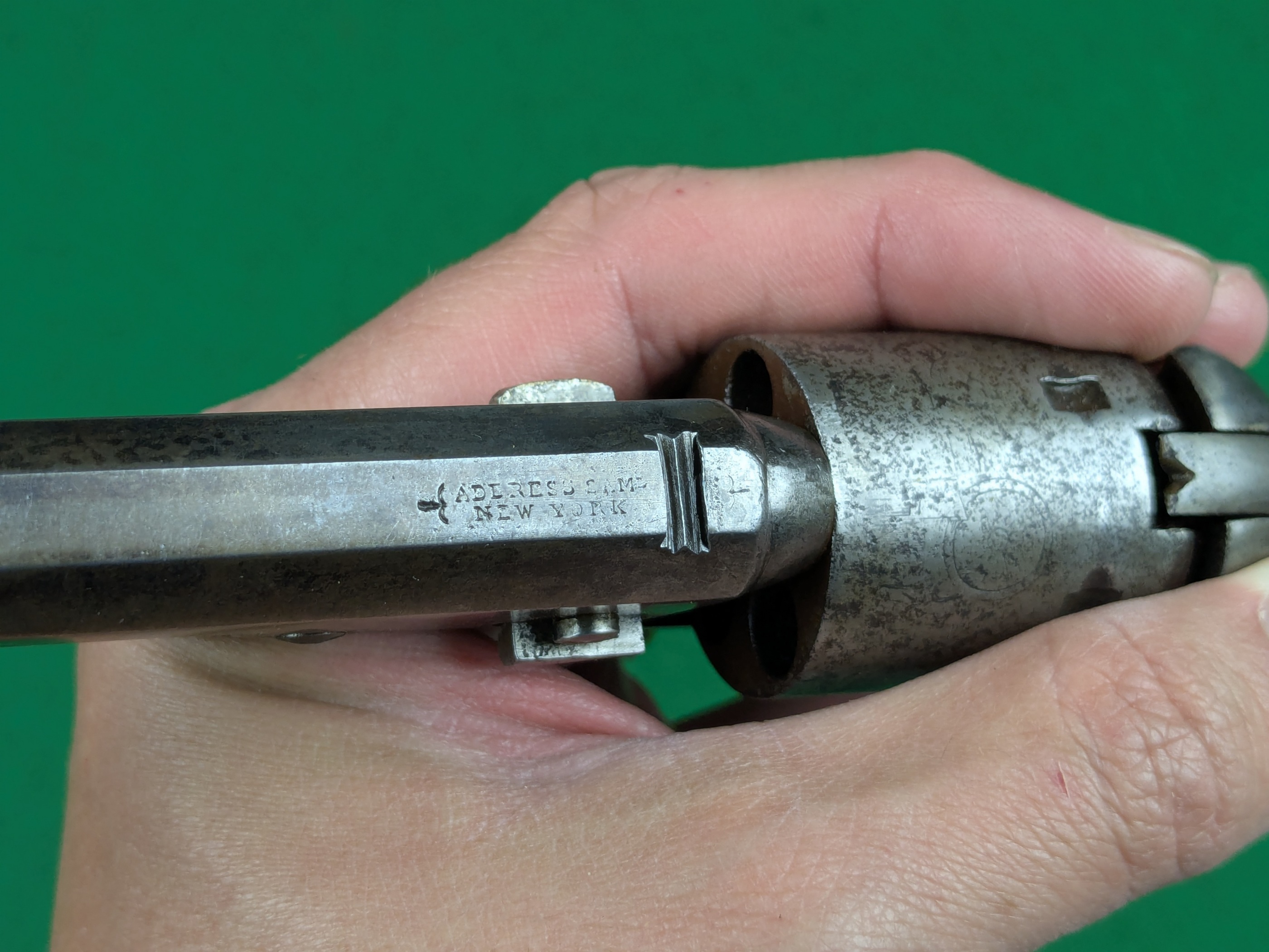 Early New York Barrel Adress. Piplängd 5". Trumma för fem skott i kaliber .31". Single-action.