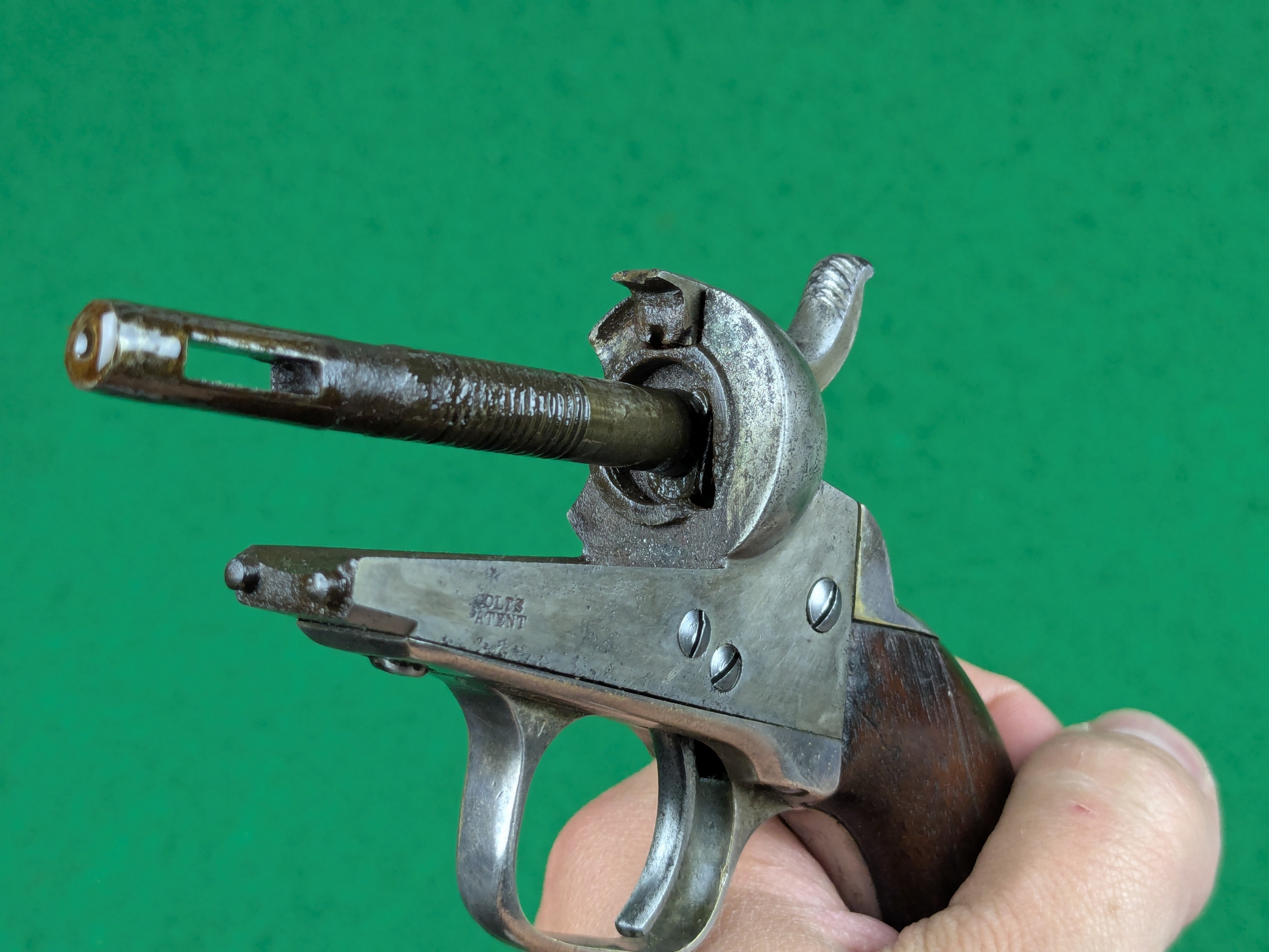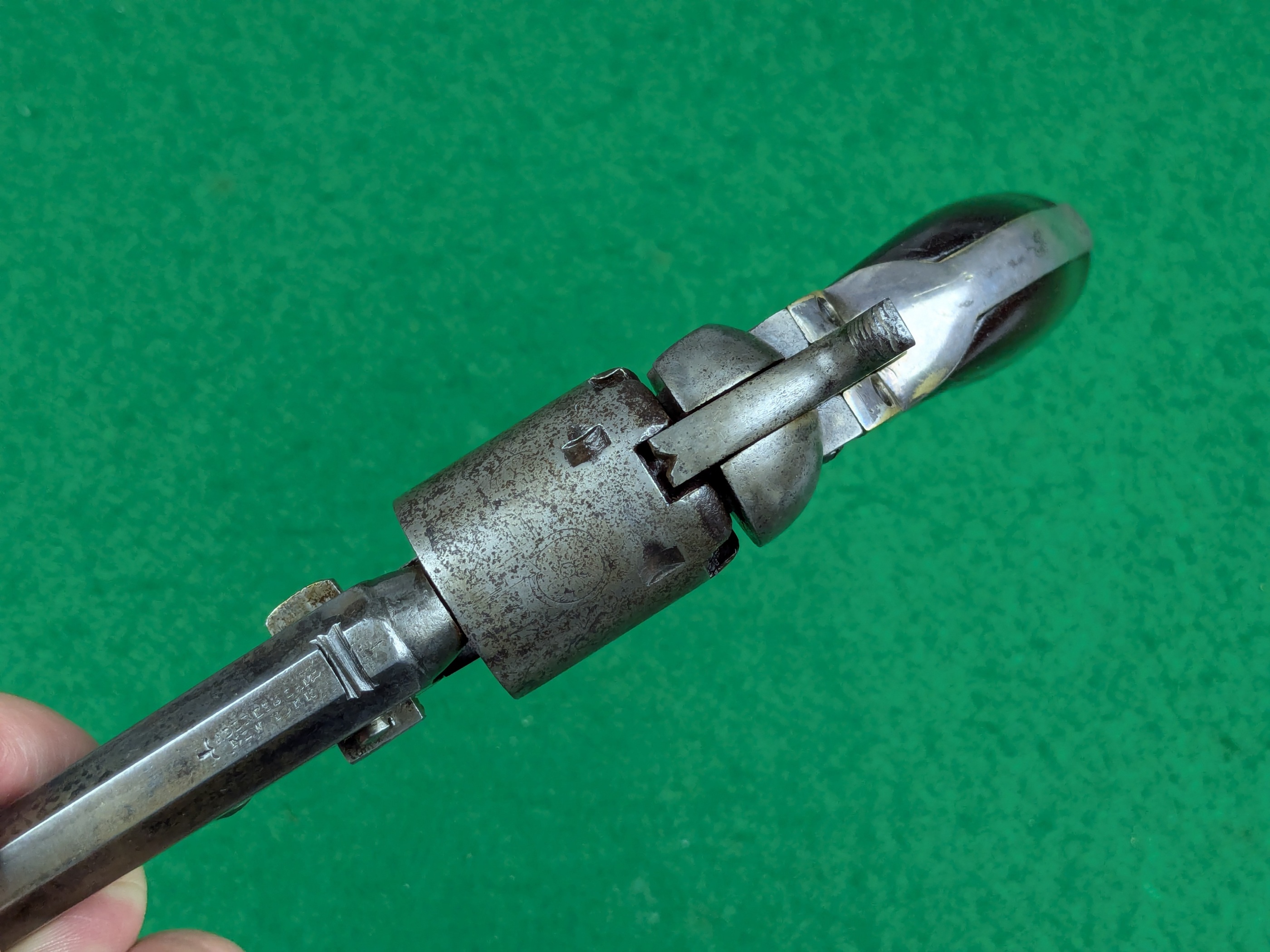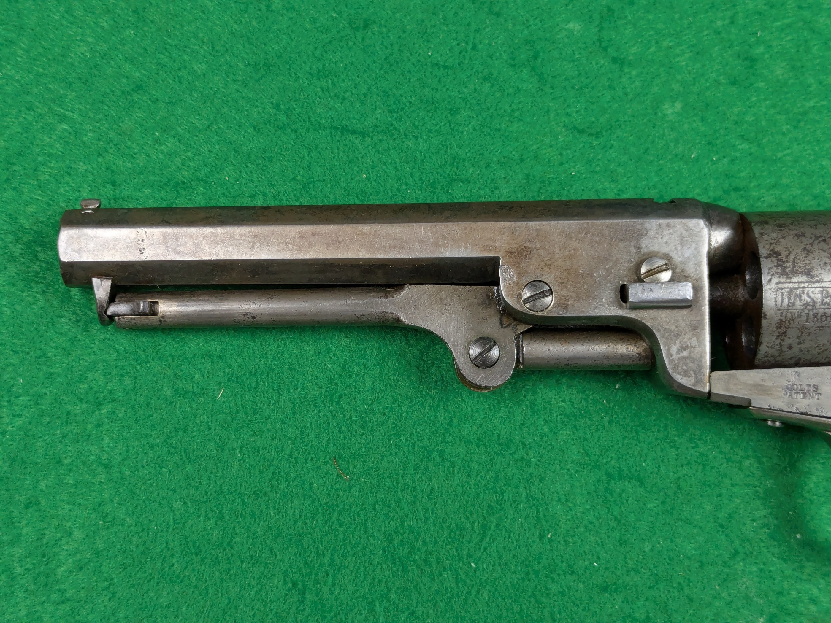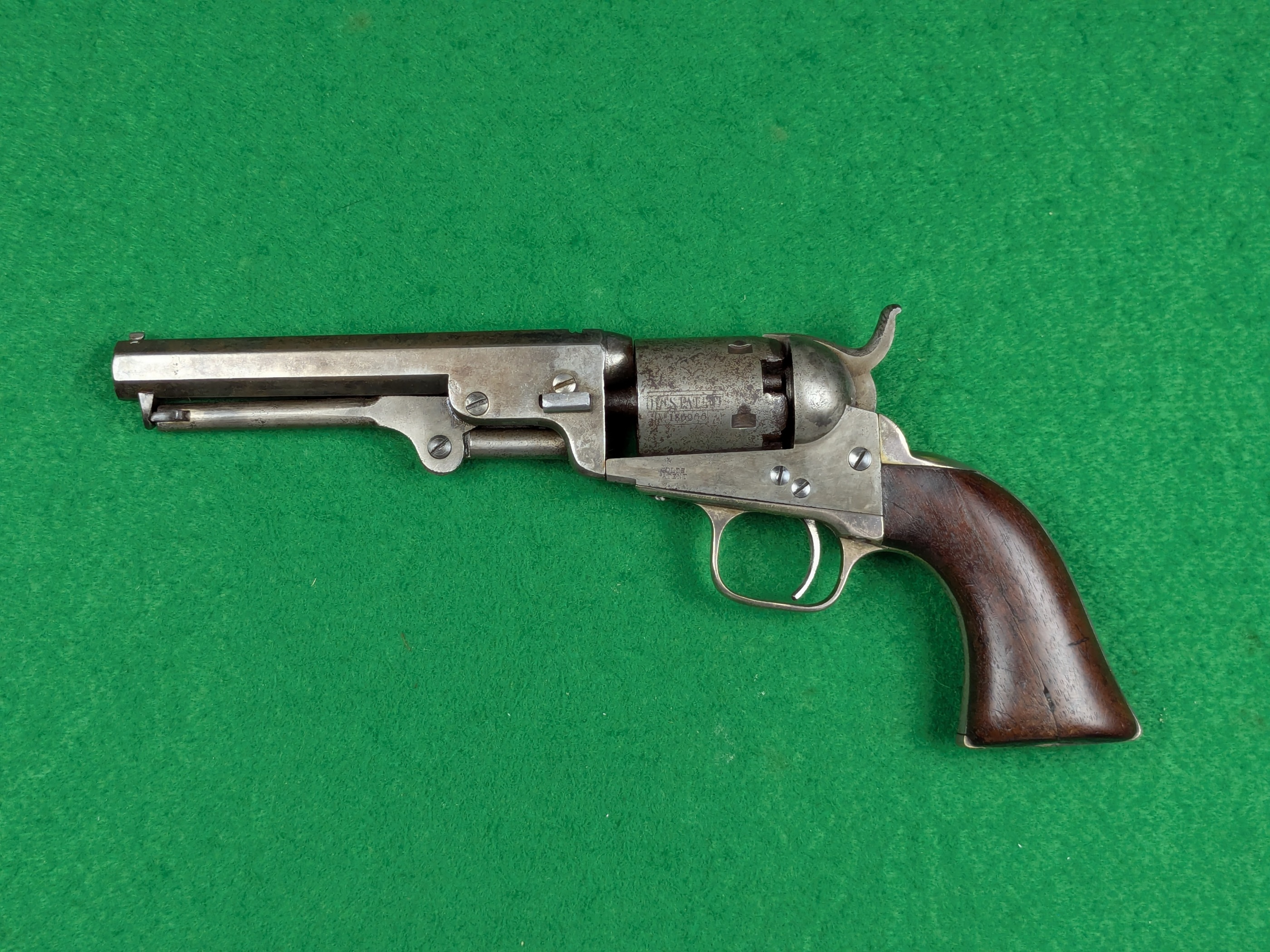 Early New York Barrel Adress. Piplängd 5". Trumma för fem skott i kaliber .31". Single-action.