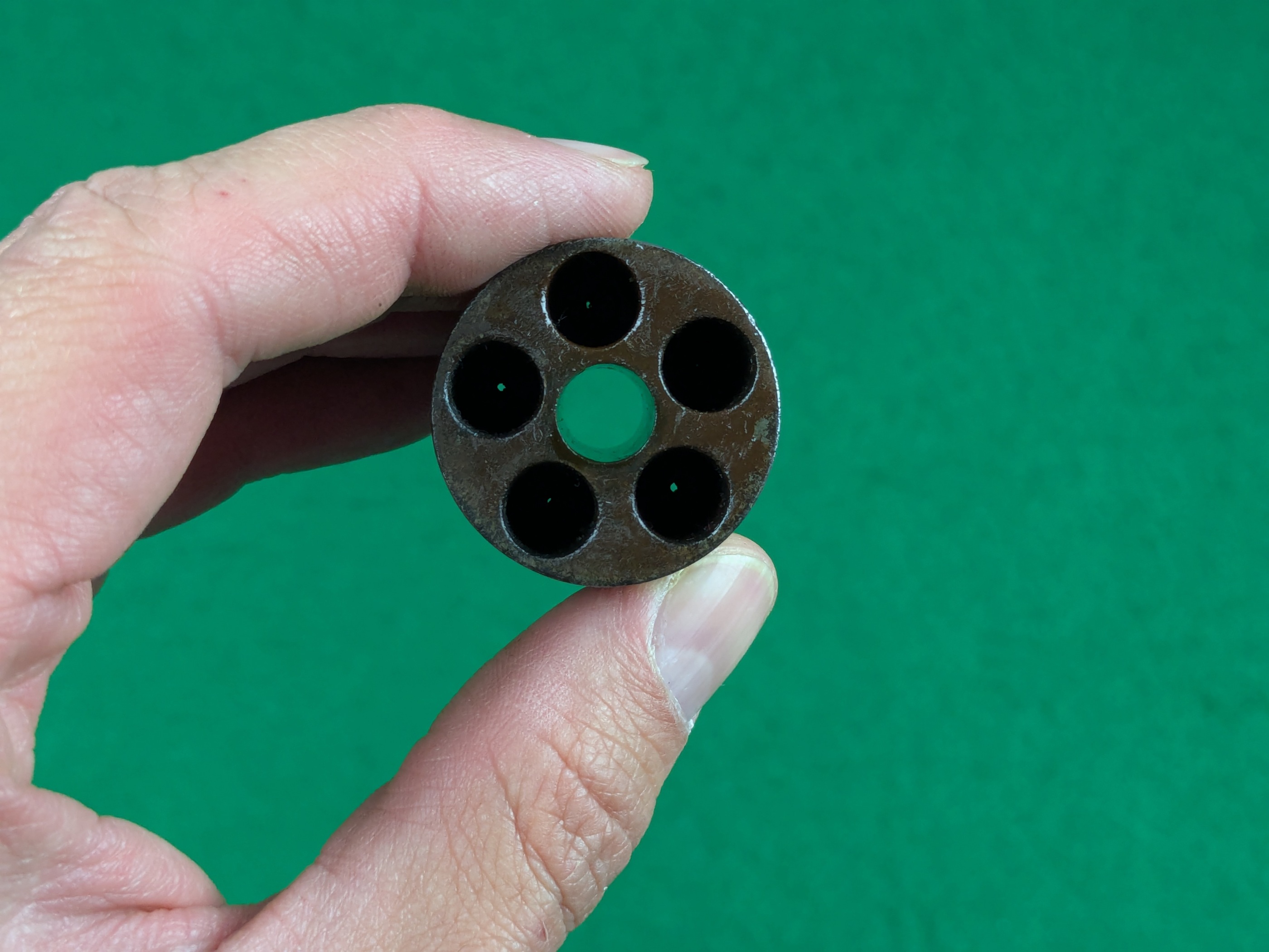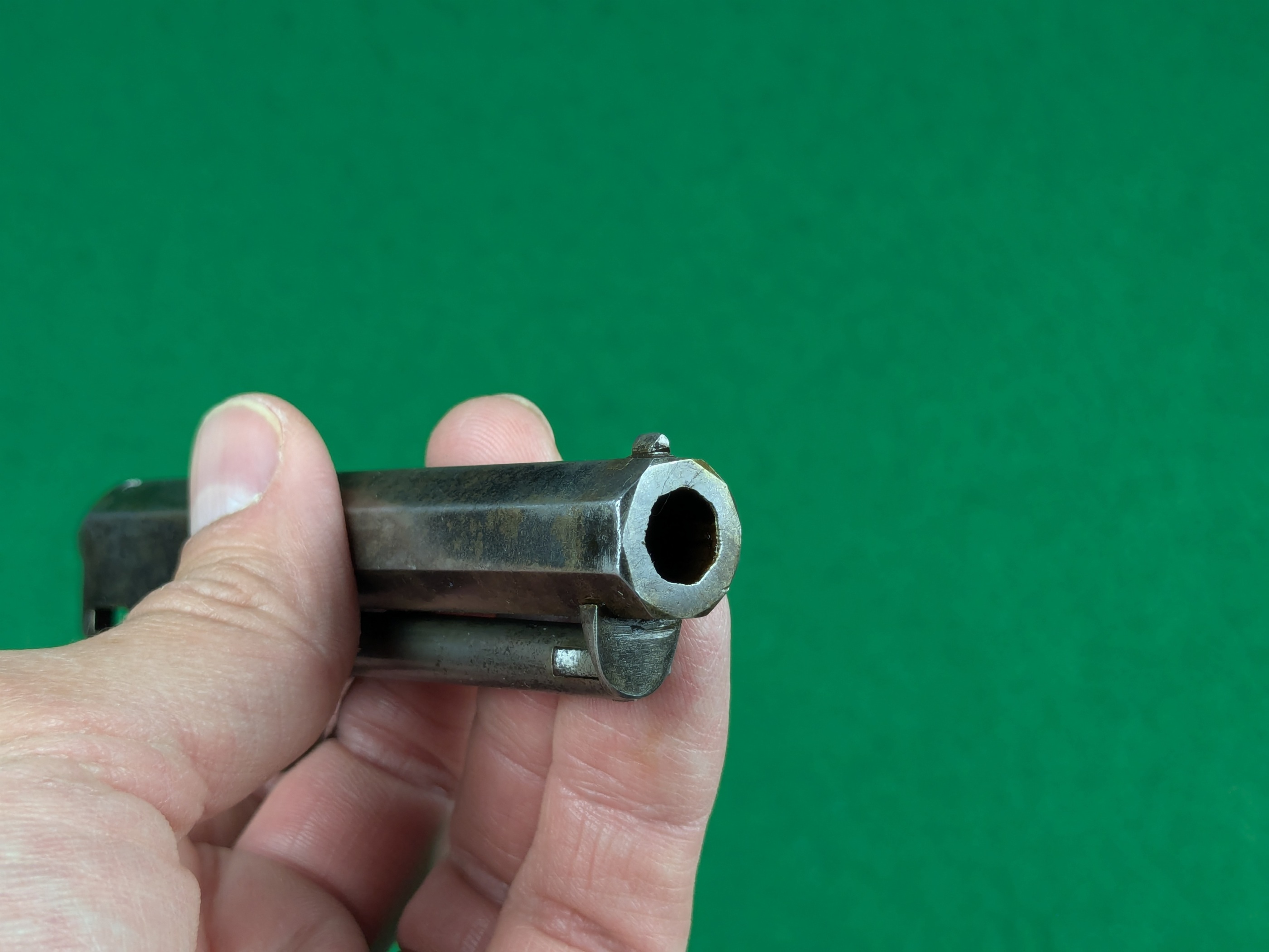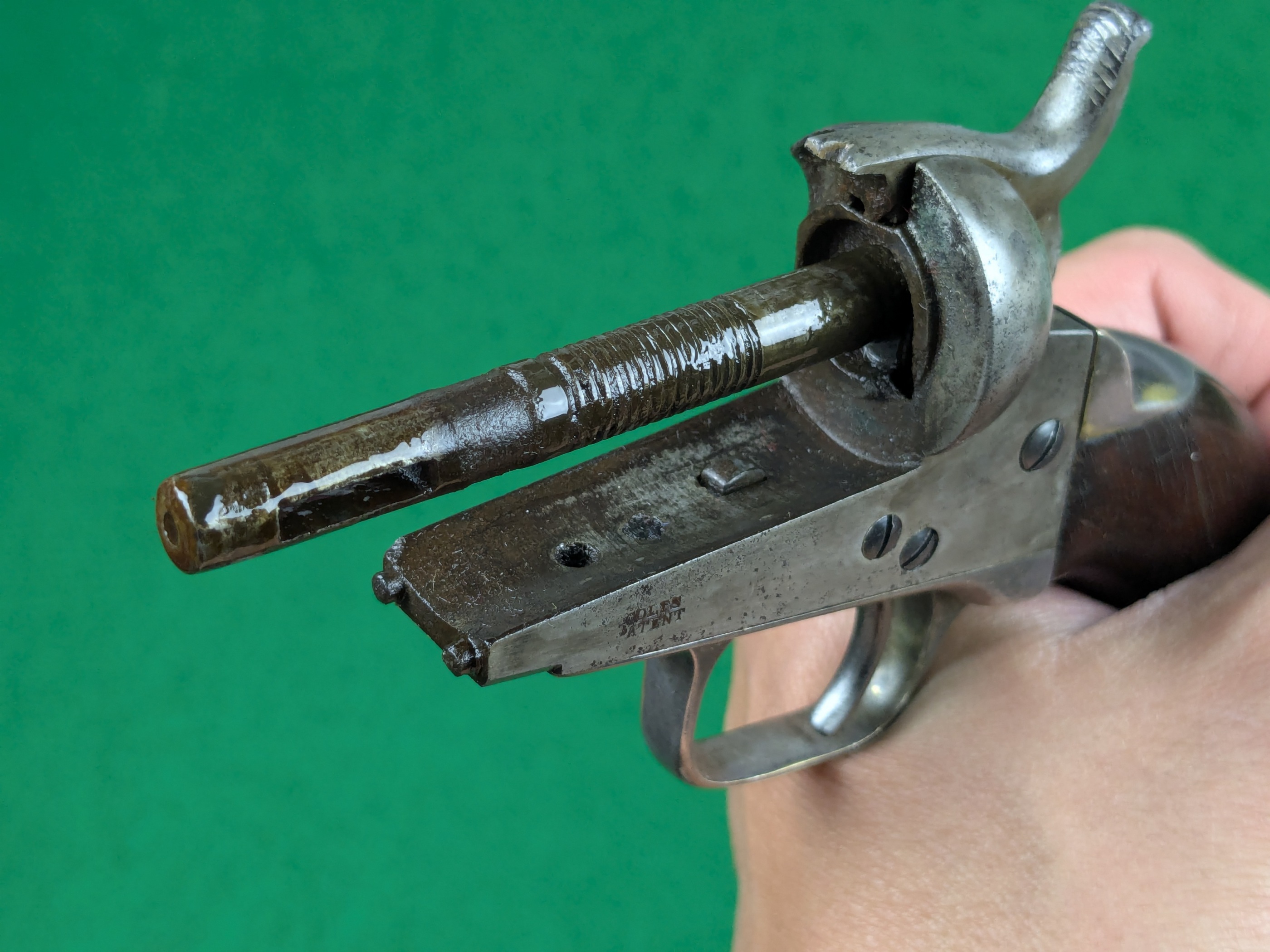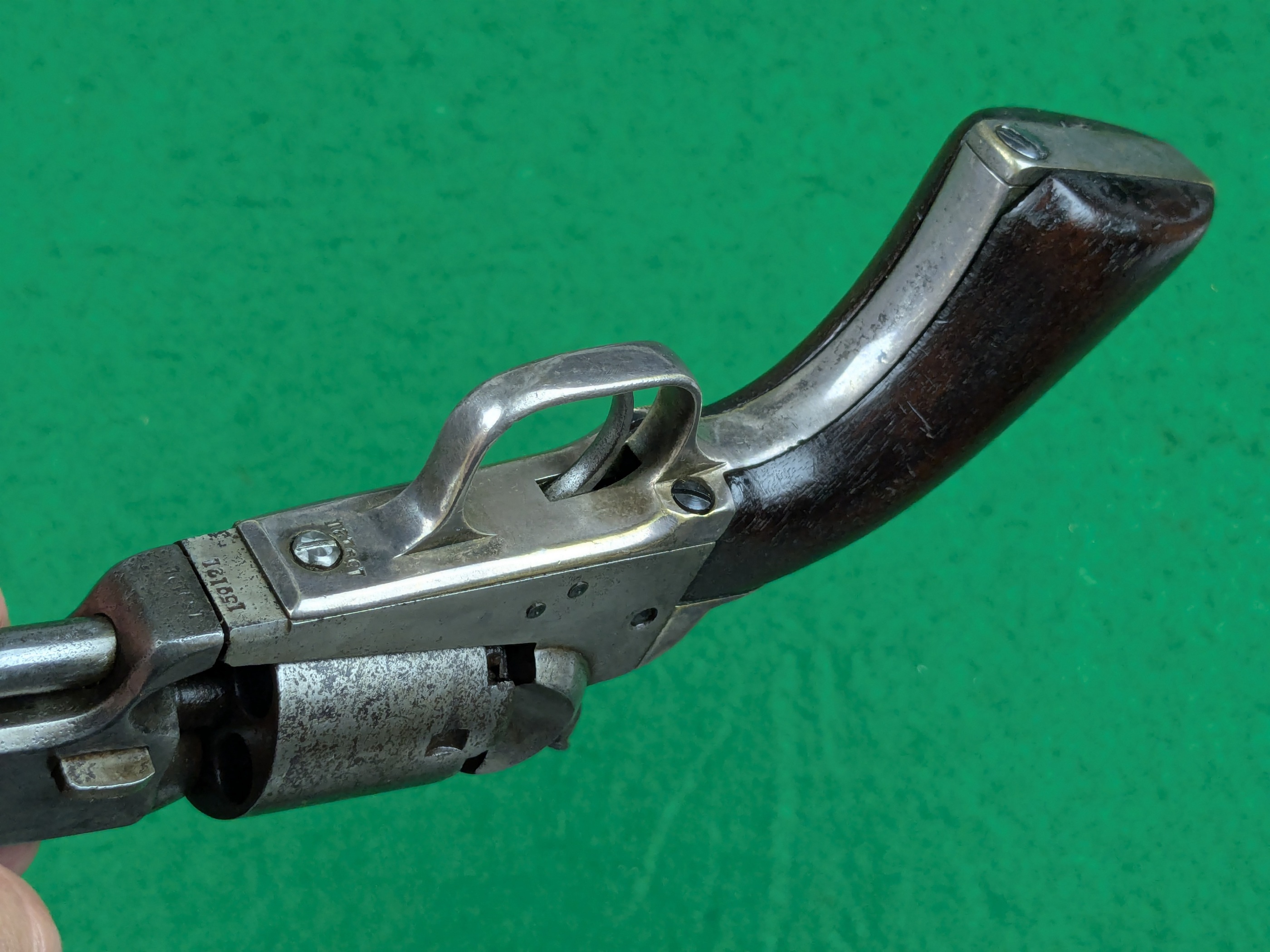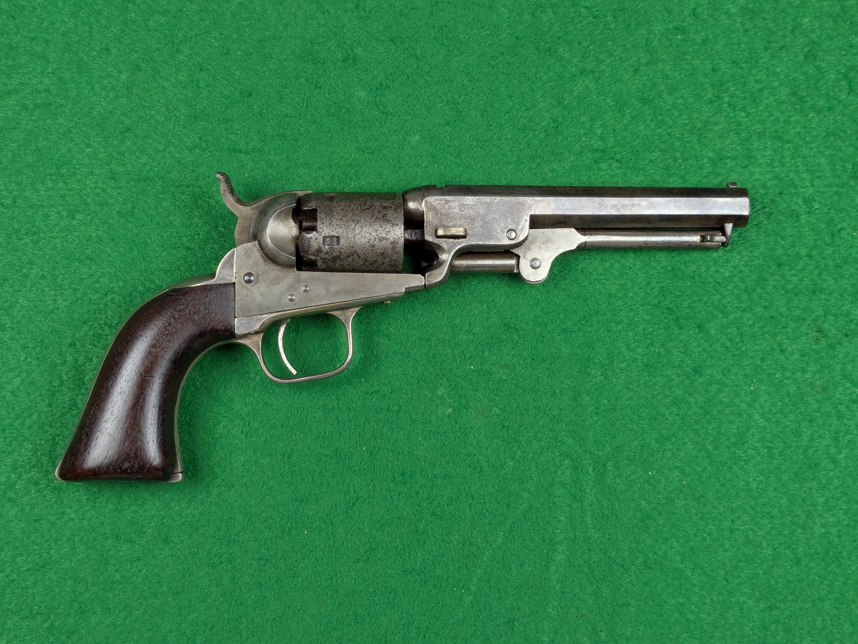 Early New York Barrel Adress. Piplängd 5". Trumma för fem skott i kaliber .31". Single-action.