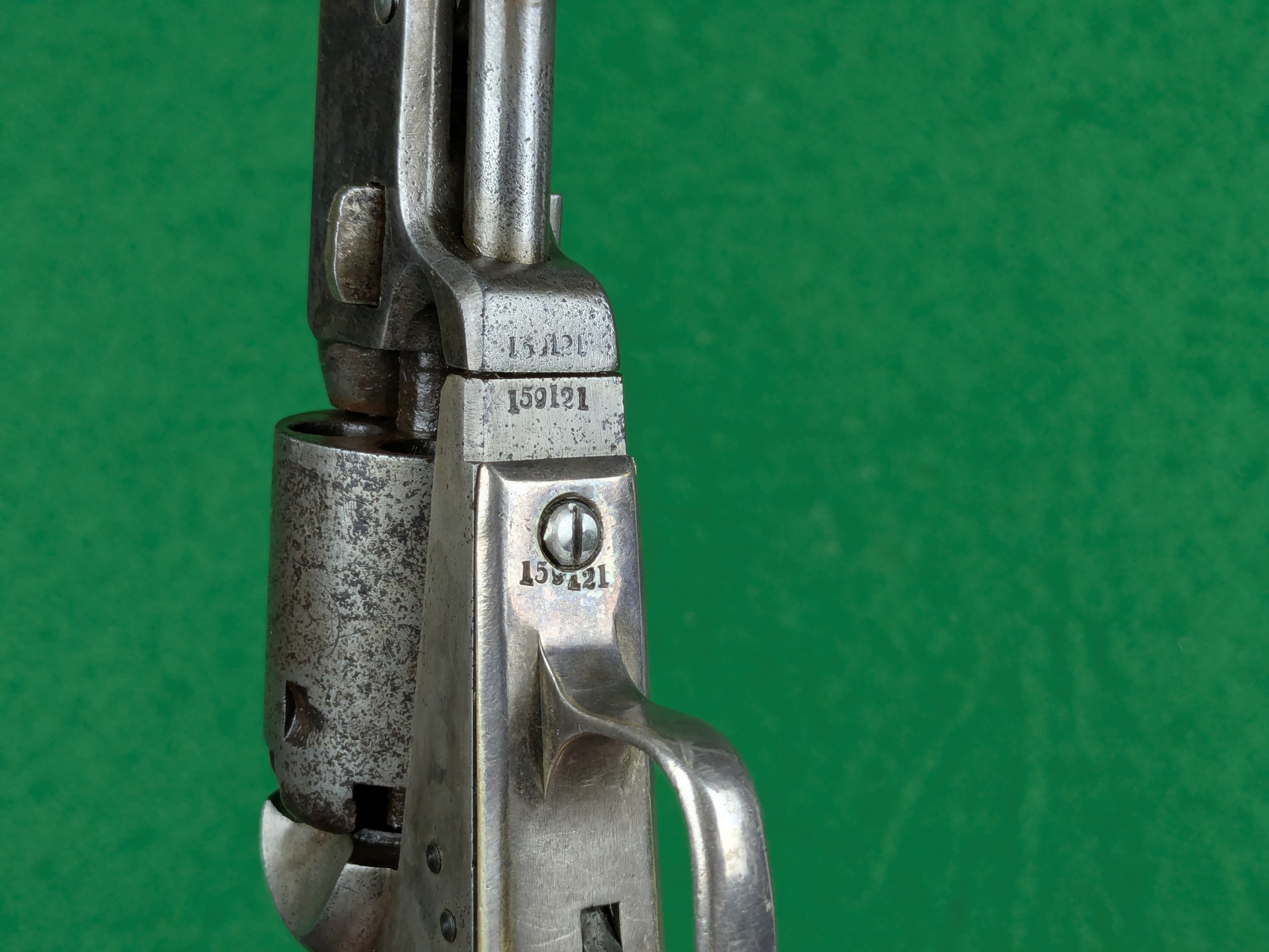 Colt Model 1849 Pocket Revolver med serienummer 159121. Tillverkad år 1859 av Colt's Patent Firearms Manufacturing Company i Hartford, Connecticut.