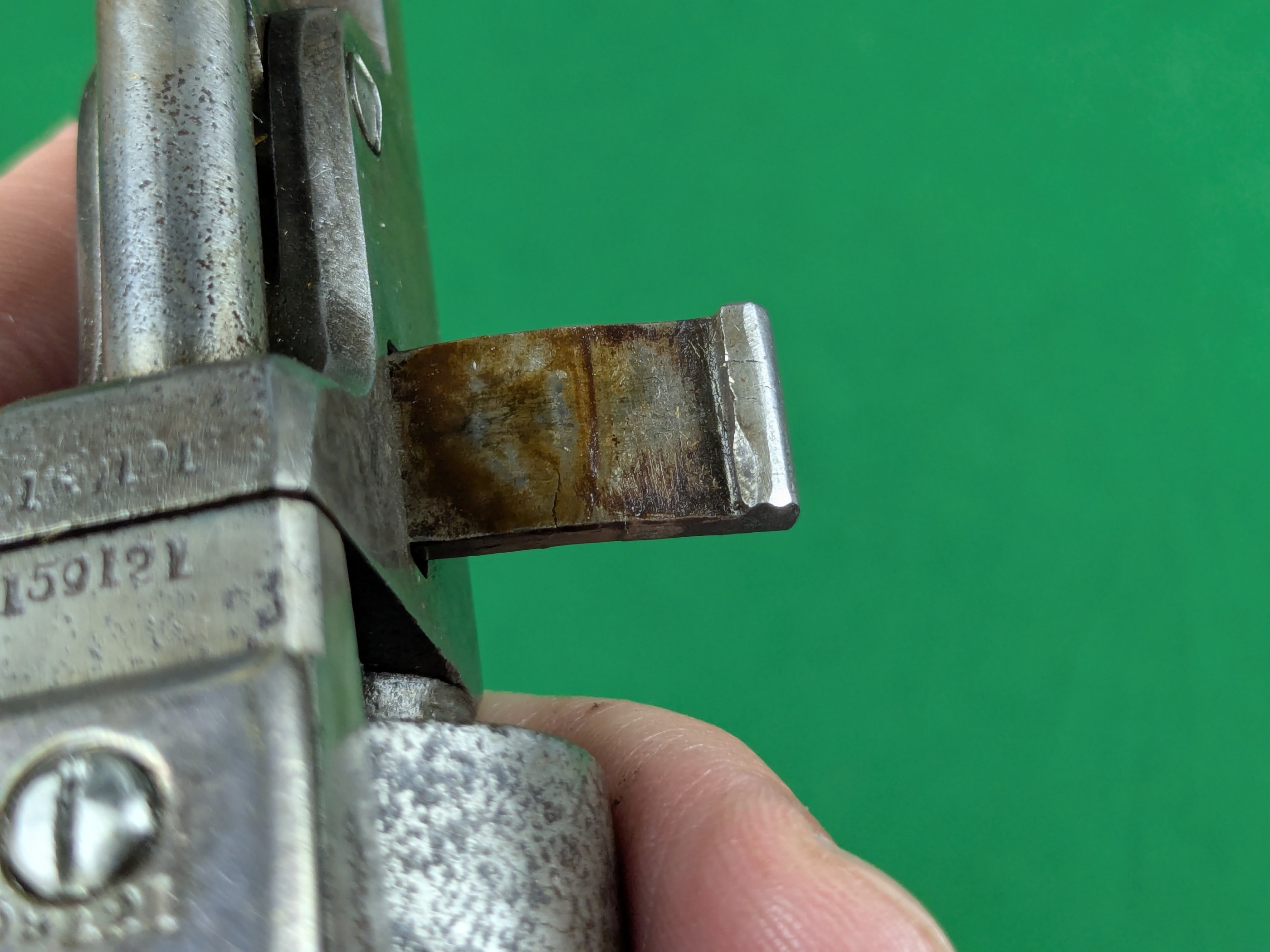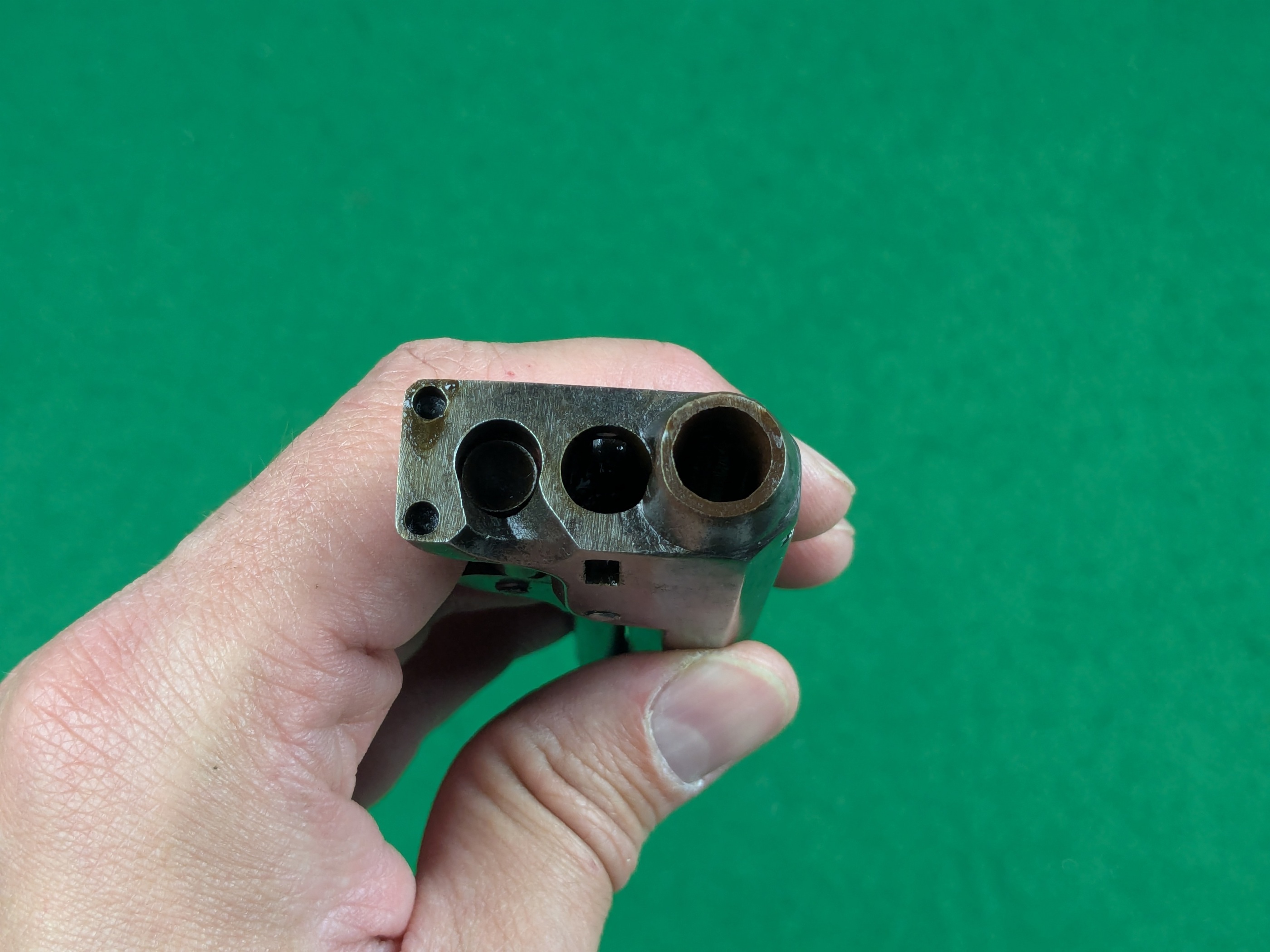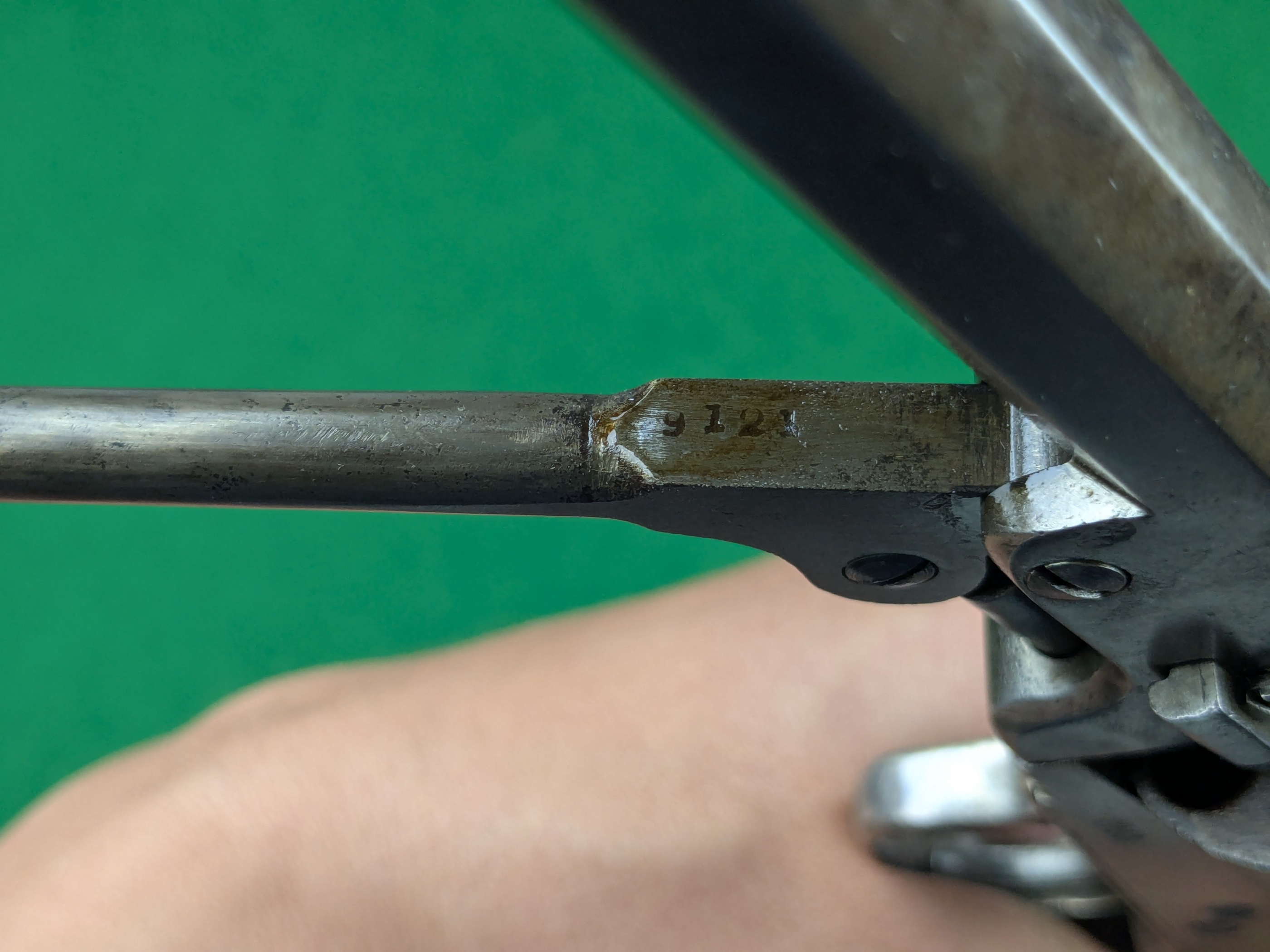 Pipan har fått siktet utbytt och det finns en urfräsning för ett bakre sikte vilket inte är av originalutförande för modellen.