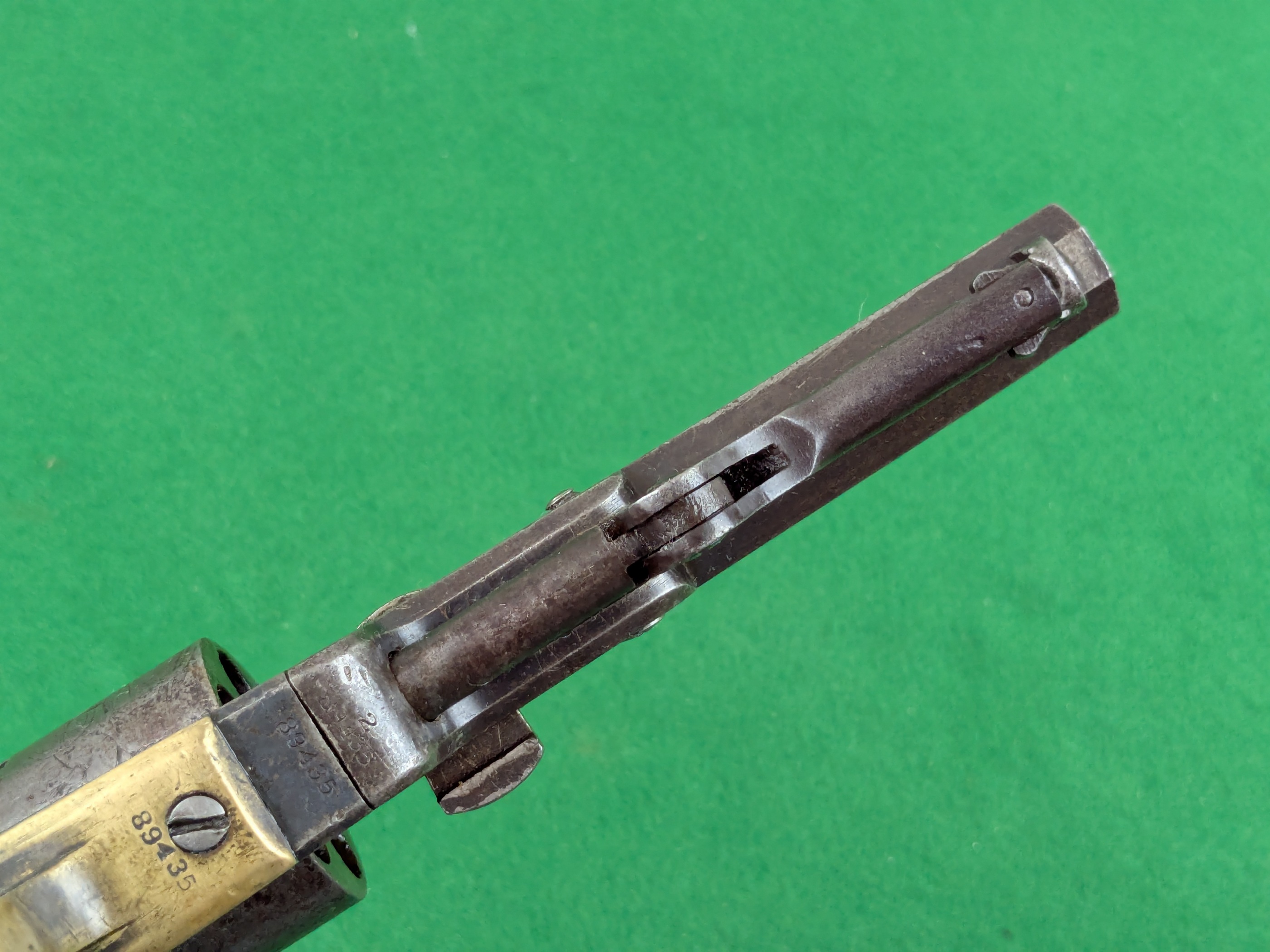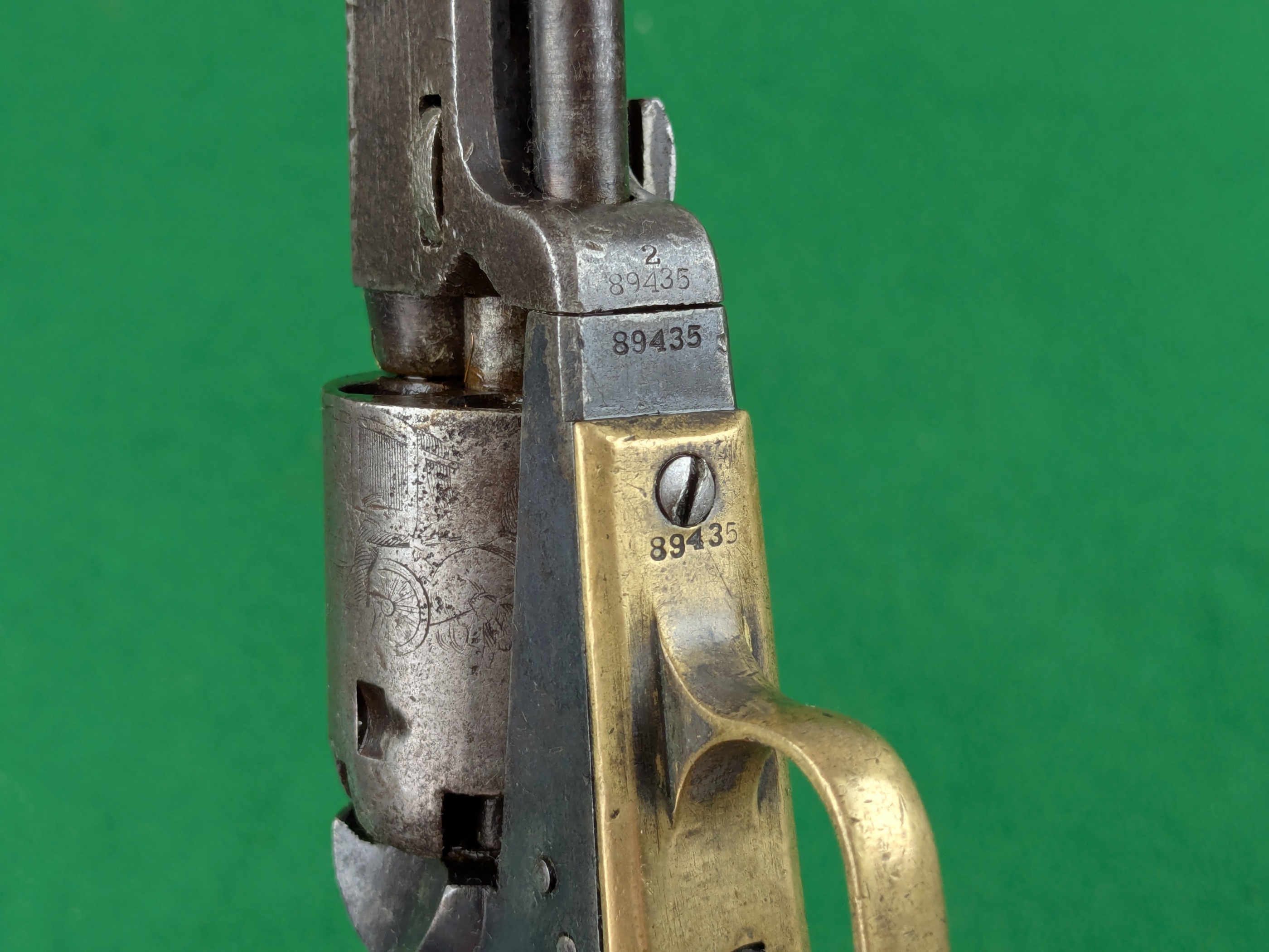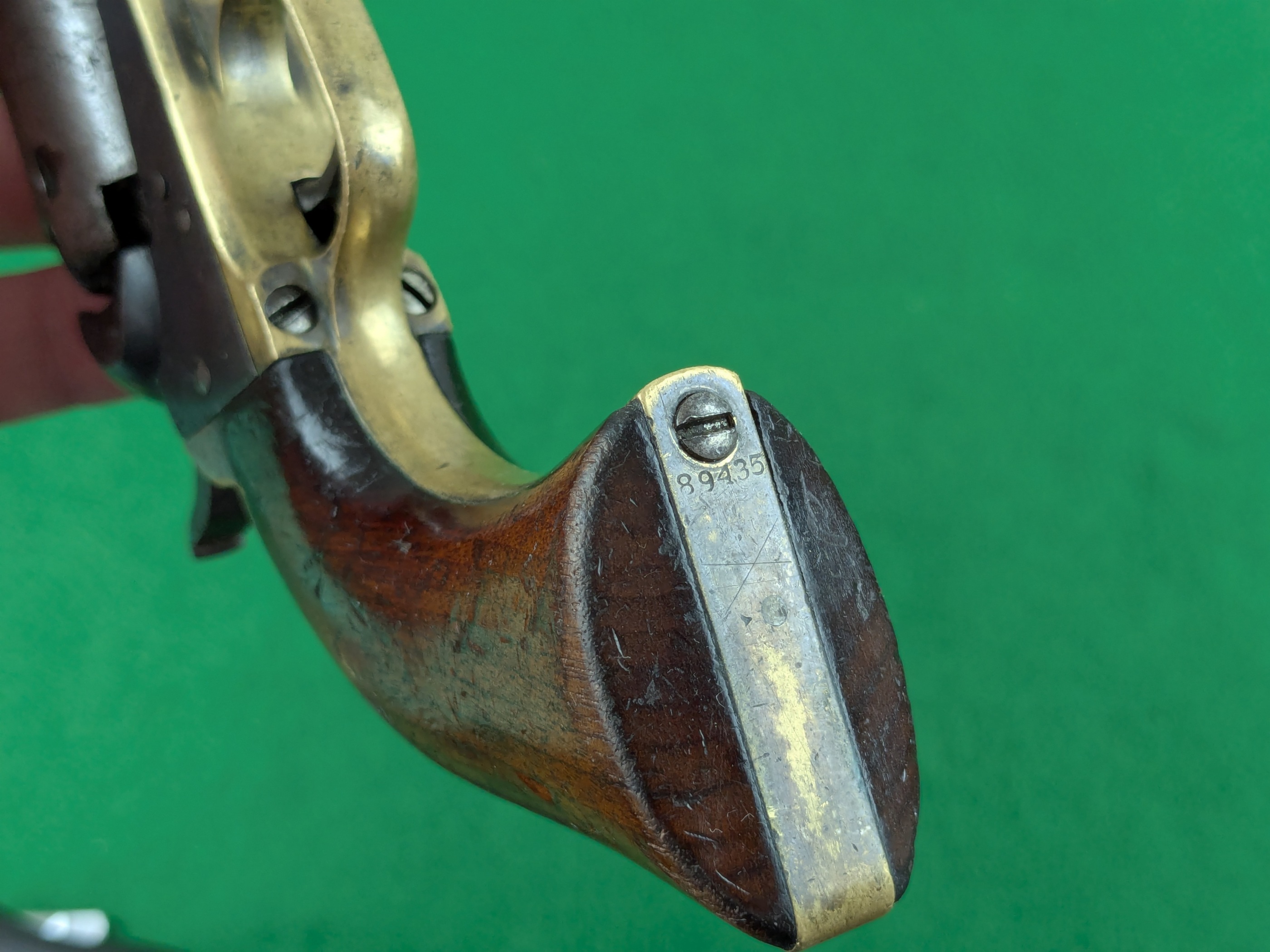 Colt Model 1849 Pocket Revolver med serienummer 89435. Tillverkad år 1854 av Colt's Patent Firearms manufacturing Company i Hartford, Connecticut.
