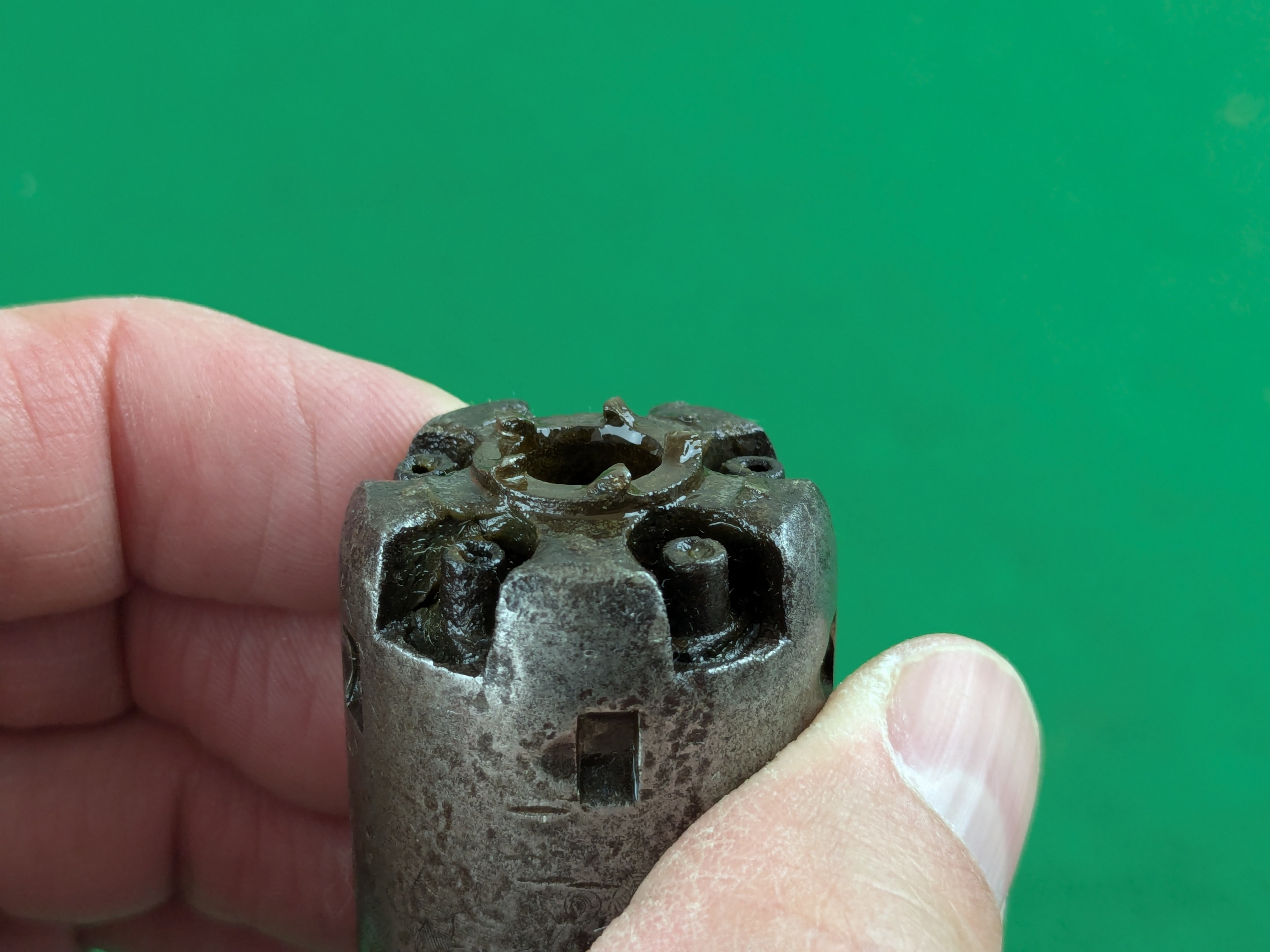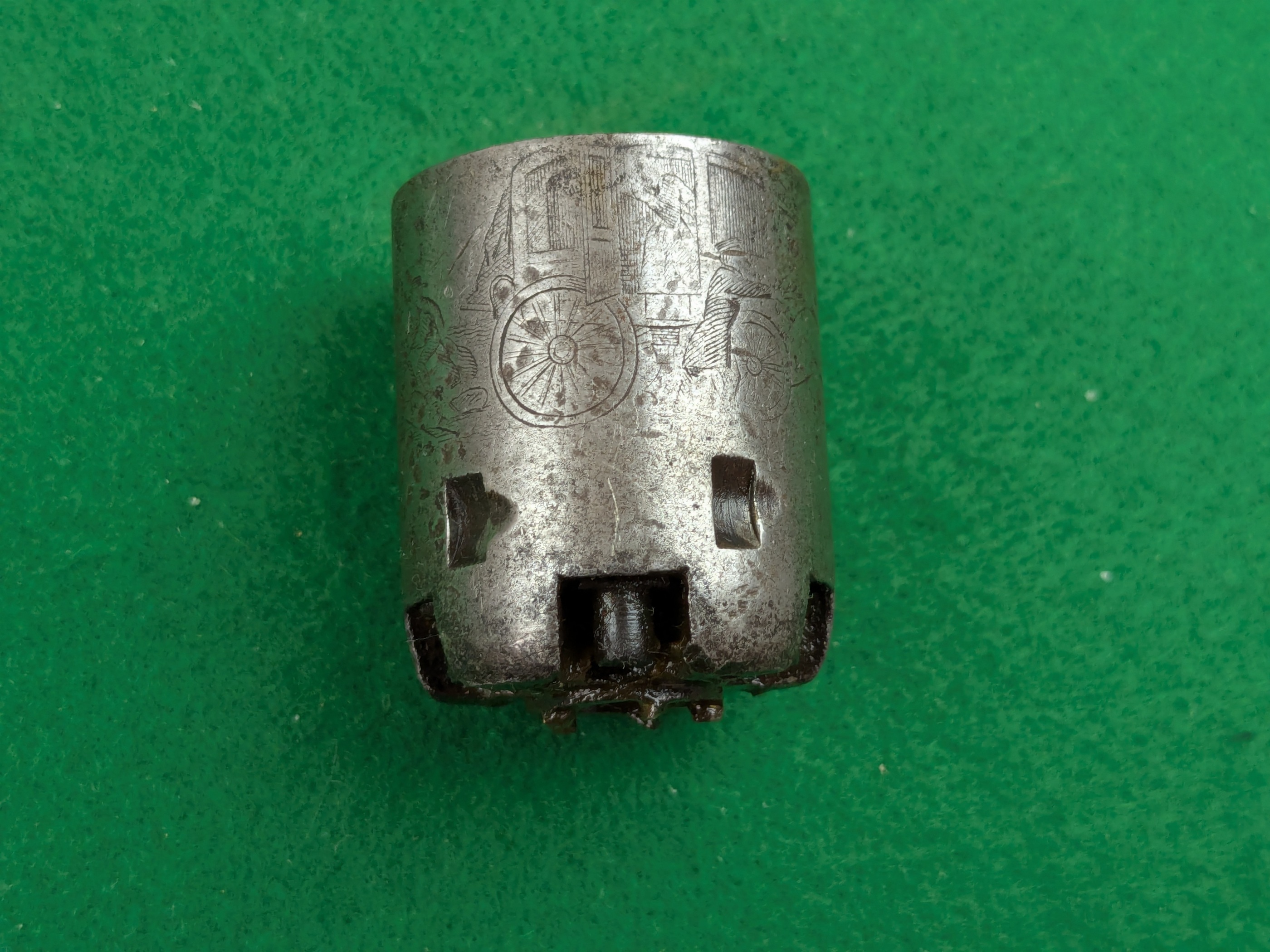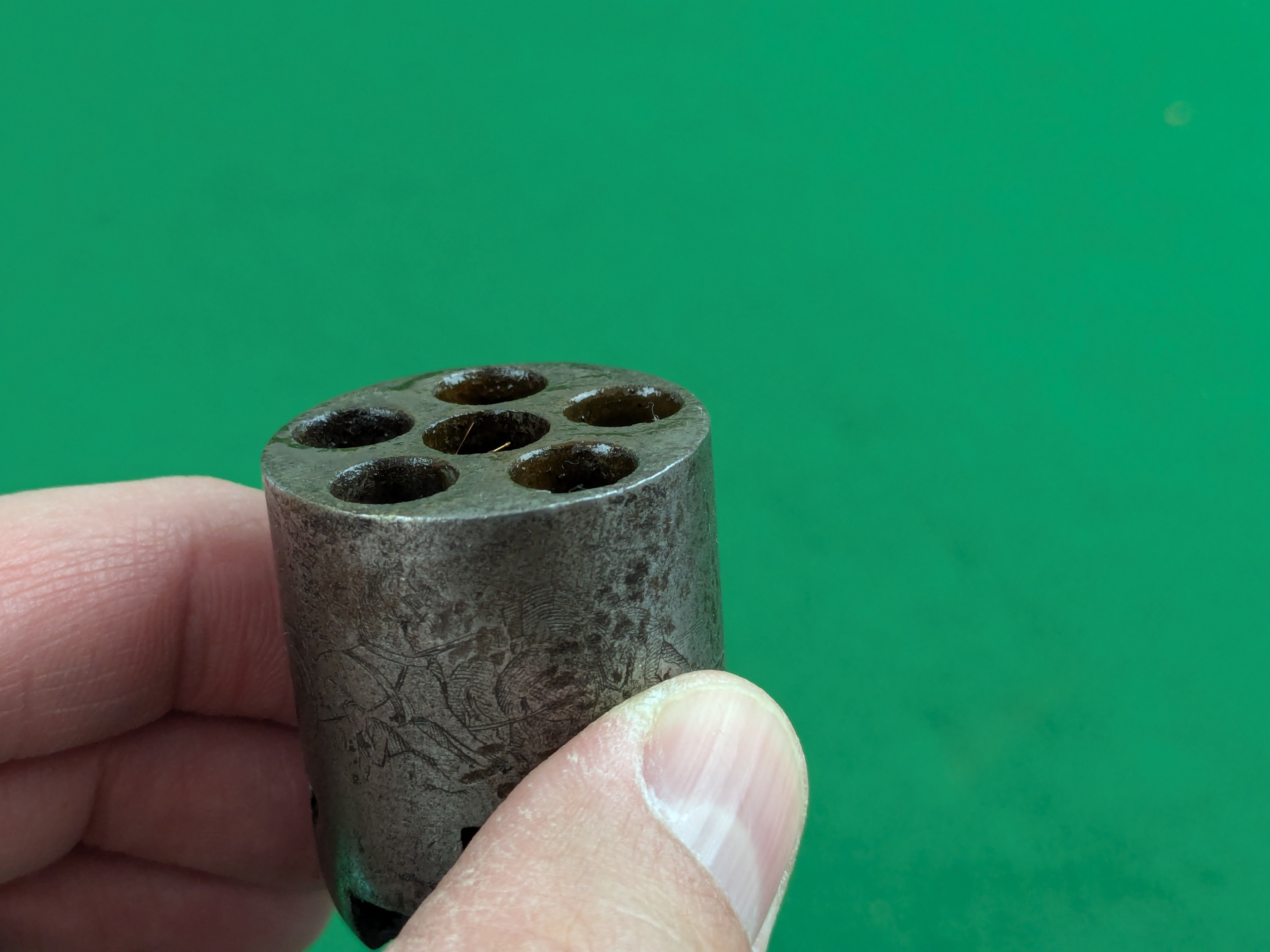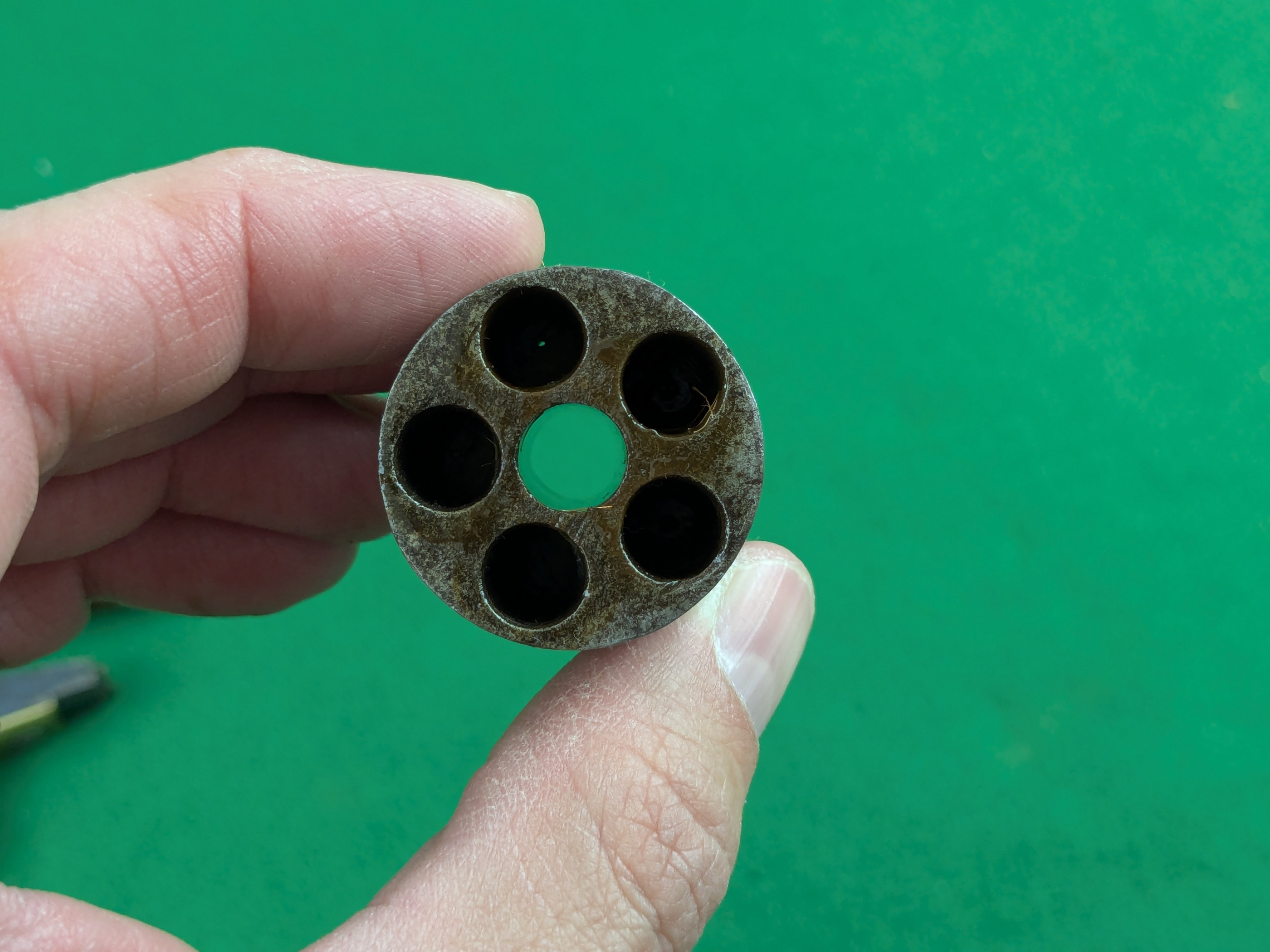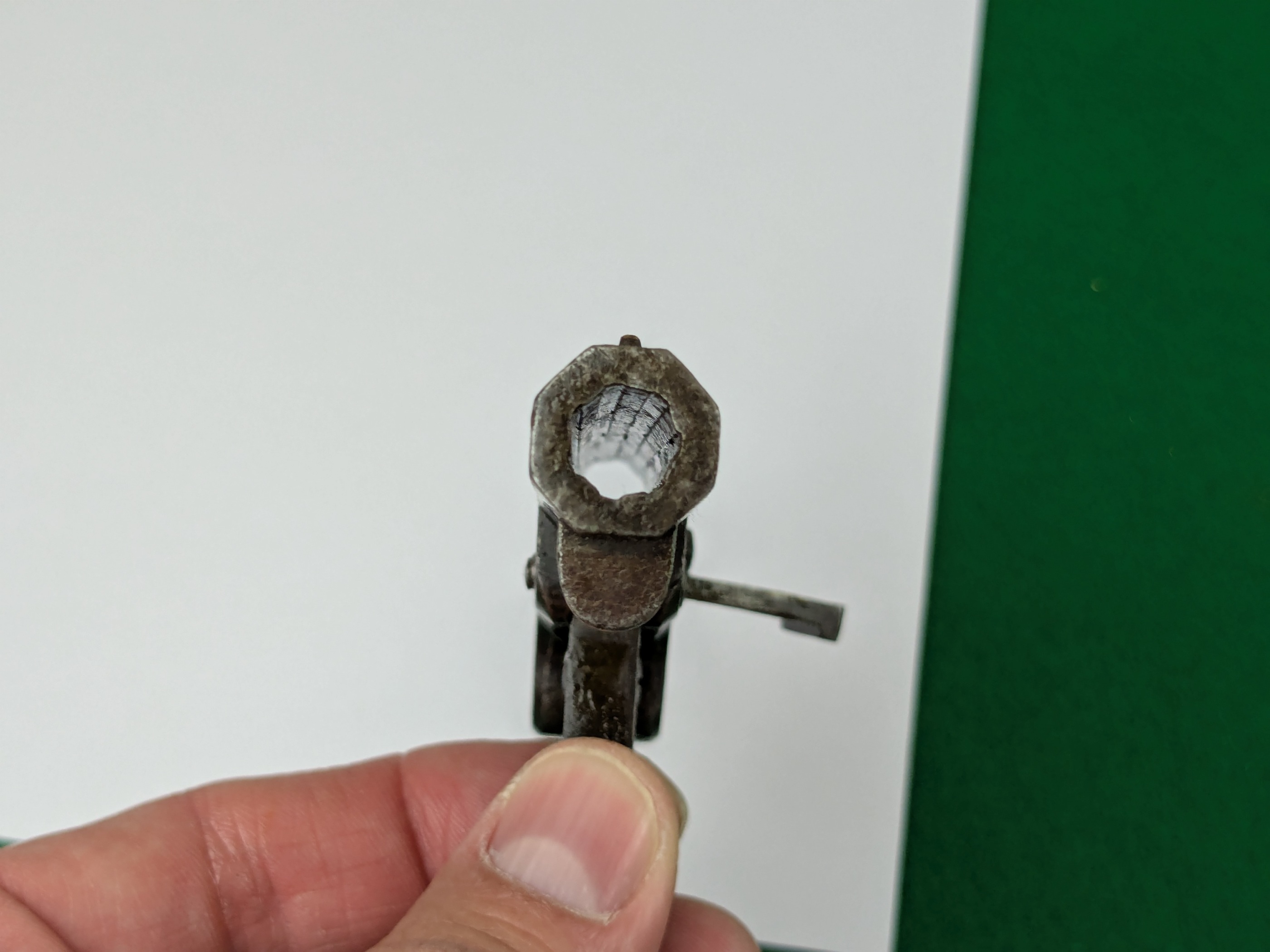Pipans längd på det här exemplaret är 4" och trumman rymmer fem skott i kaliber. 31".
