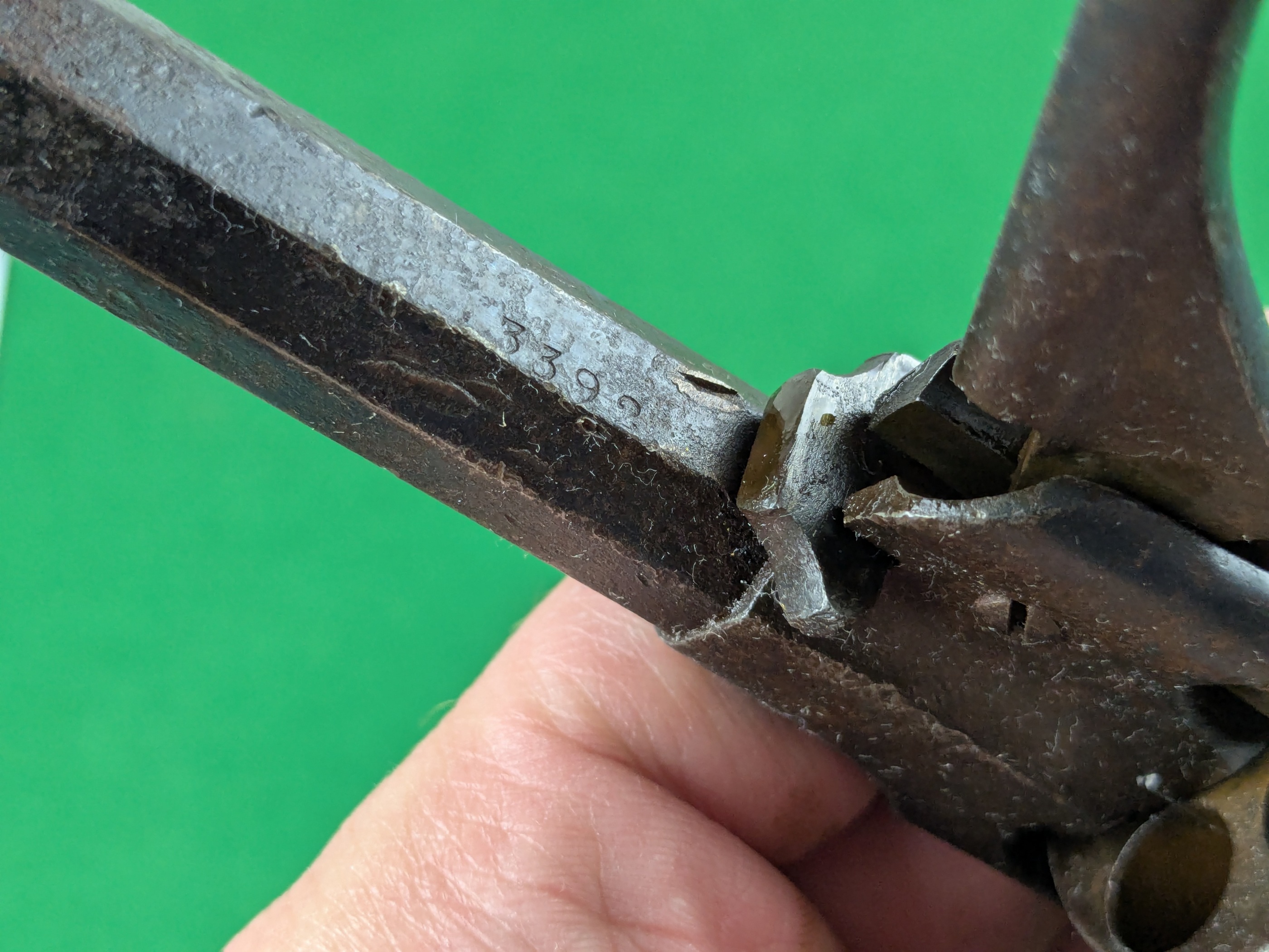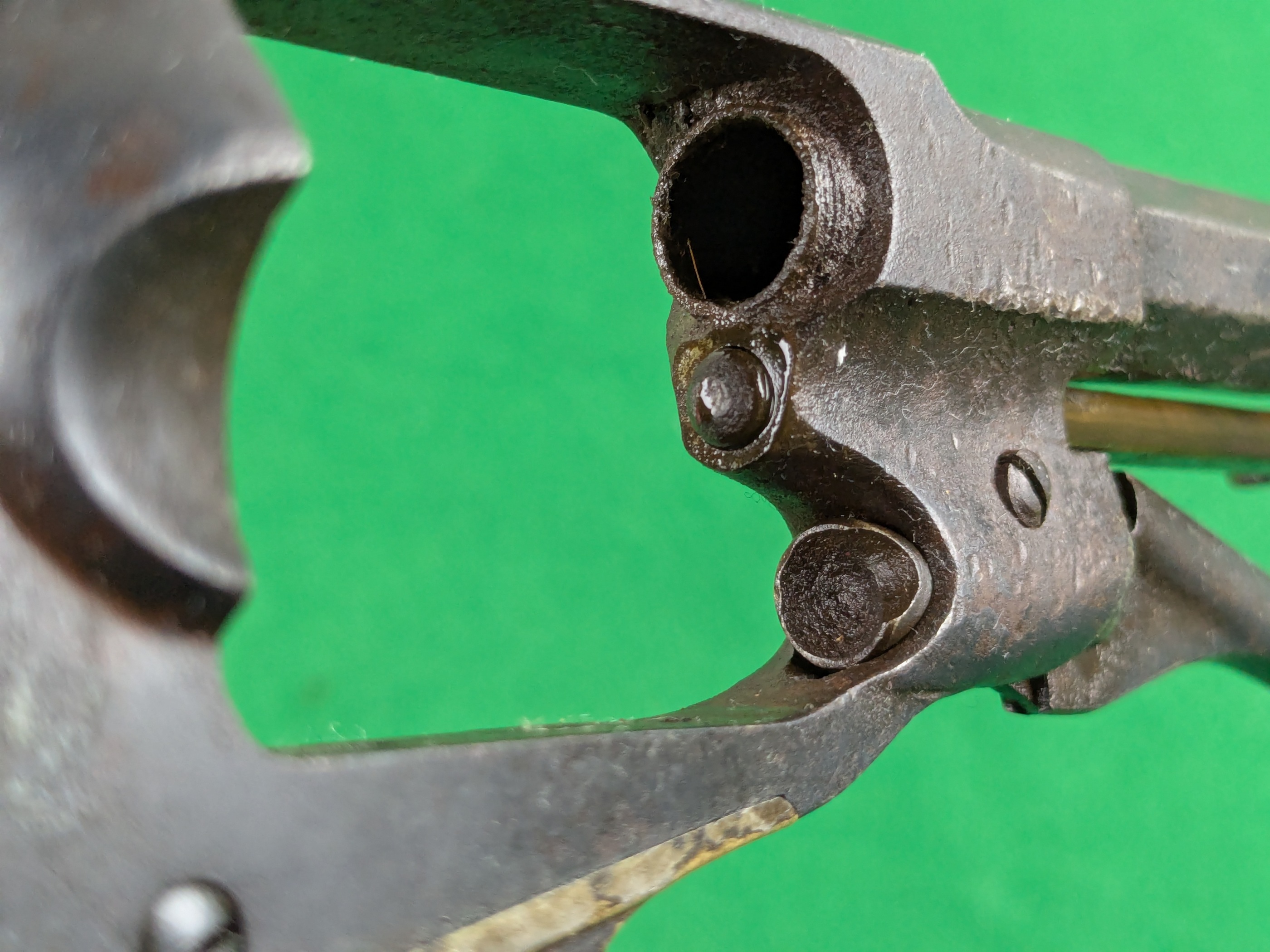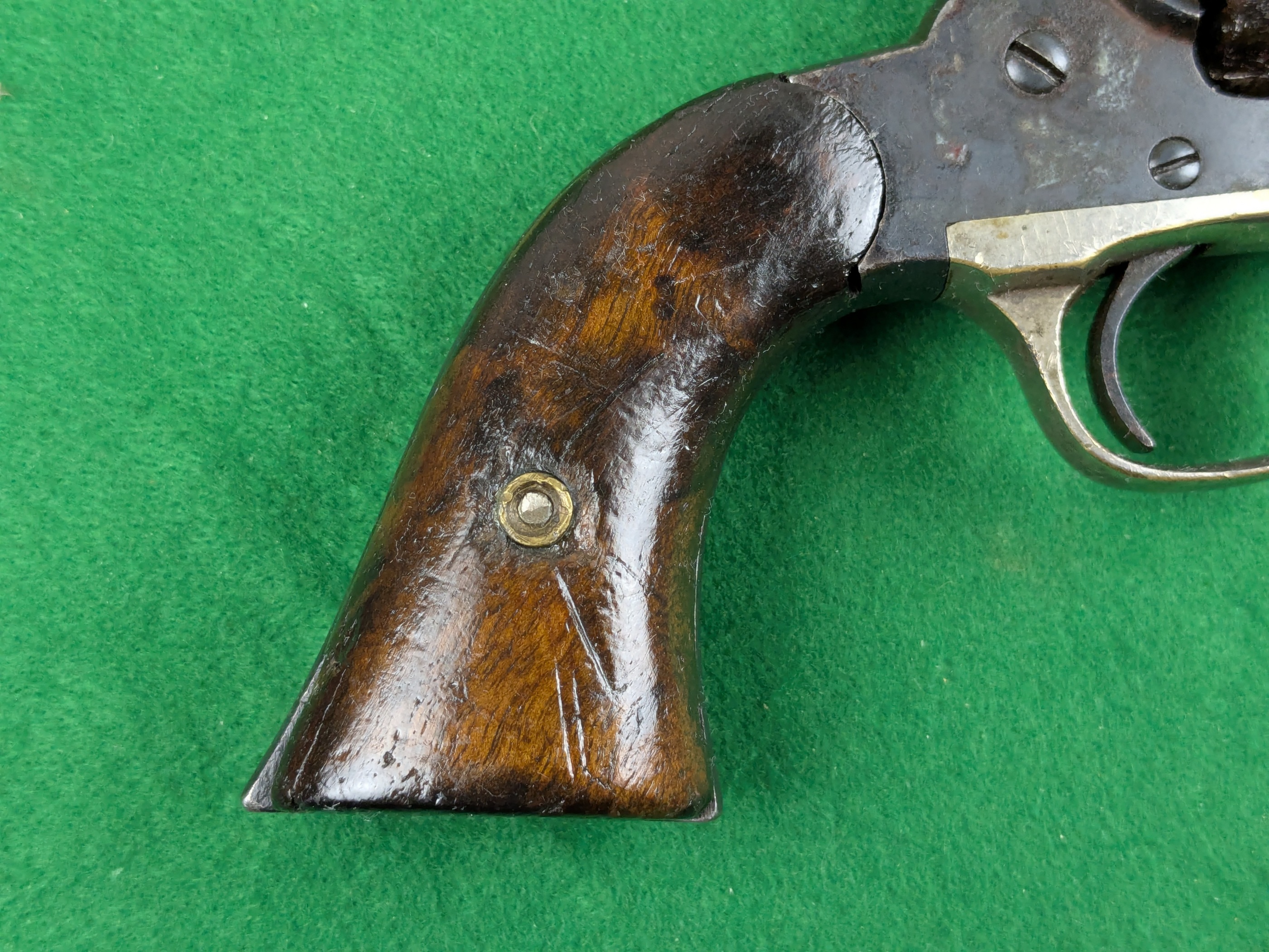 Pipan något kortad till ca 3". Trumman rymmer fem skott i kaliber .36". Single-action.