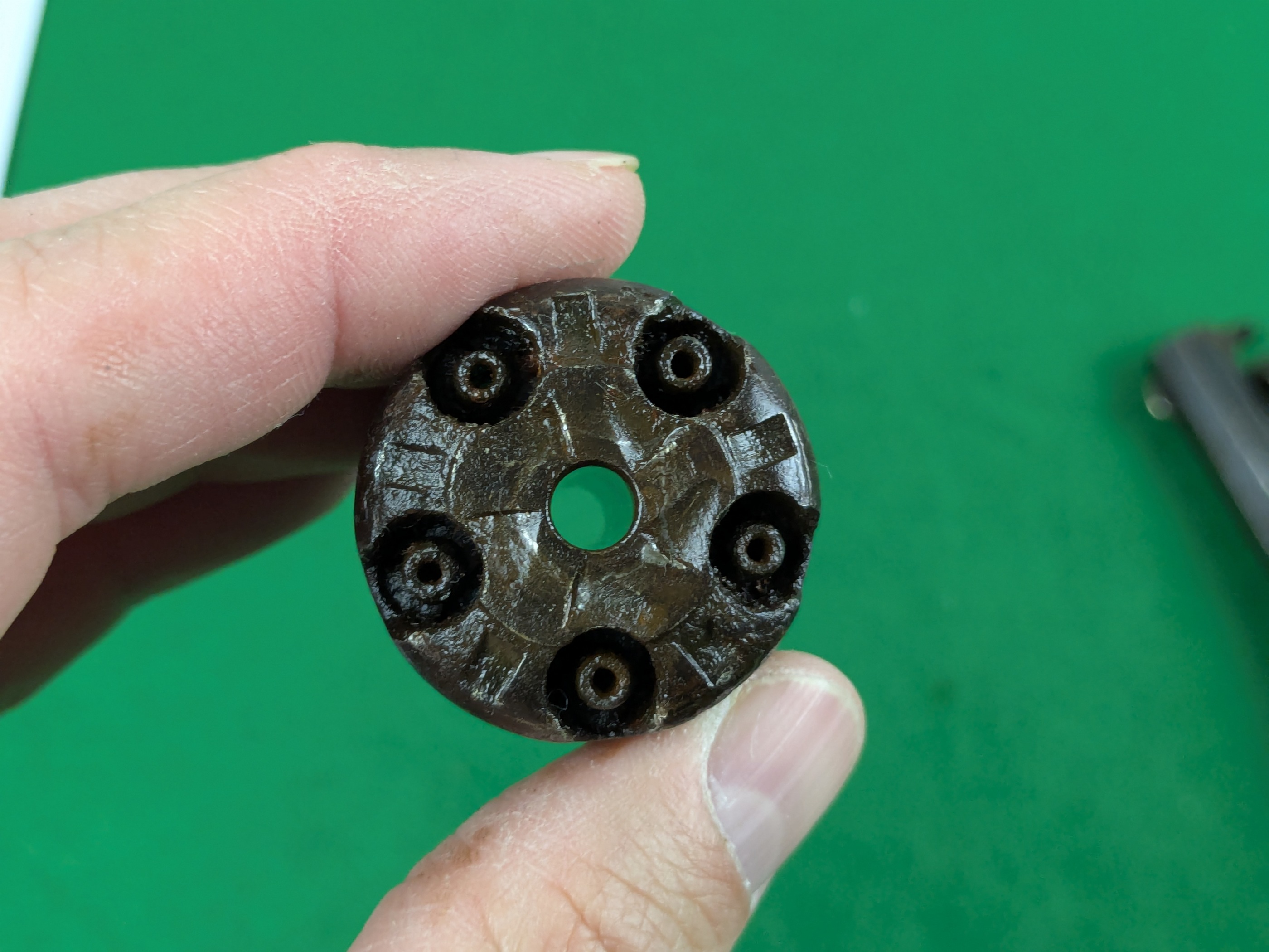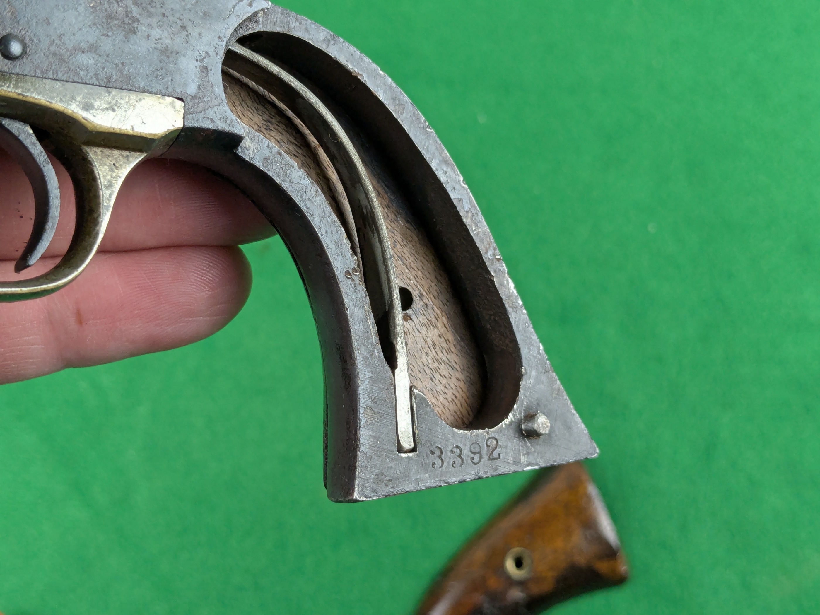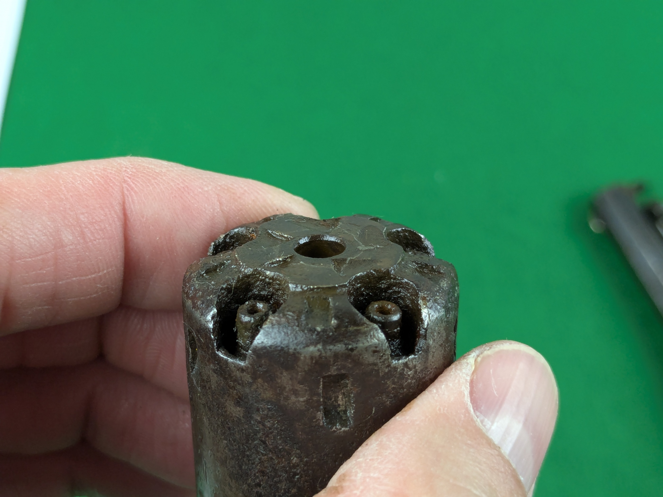 Pipan något kortad till ca 3". Trumman rymmer fem skott i kaliber .36". Single-action.