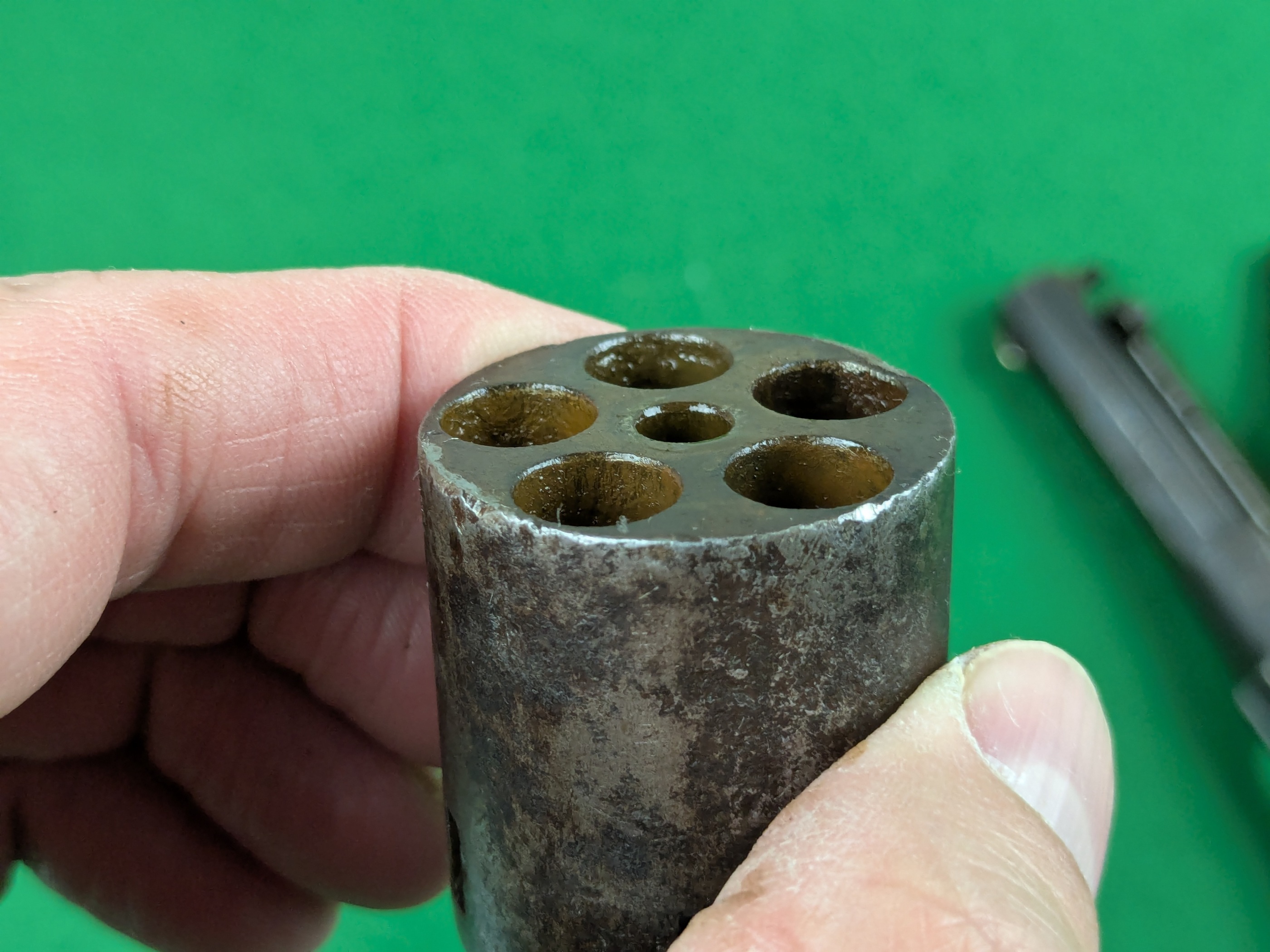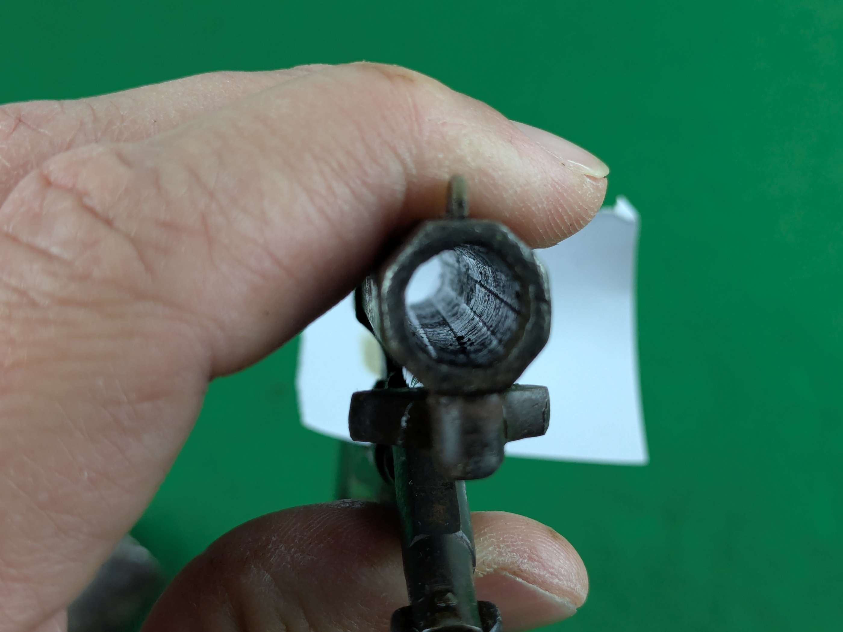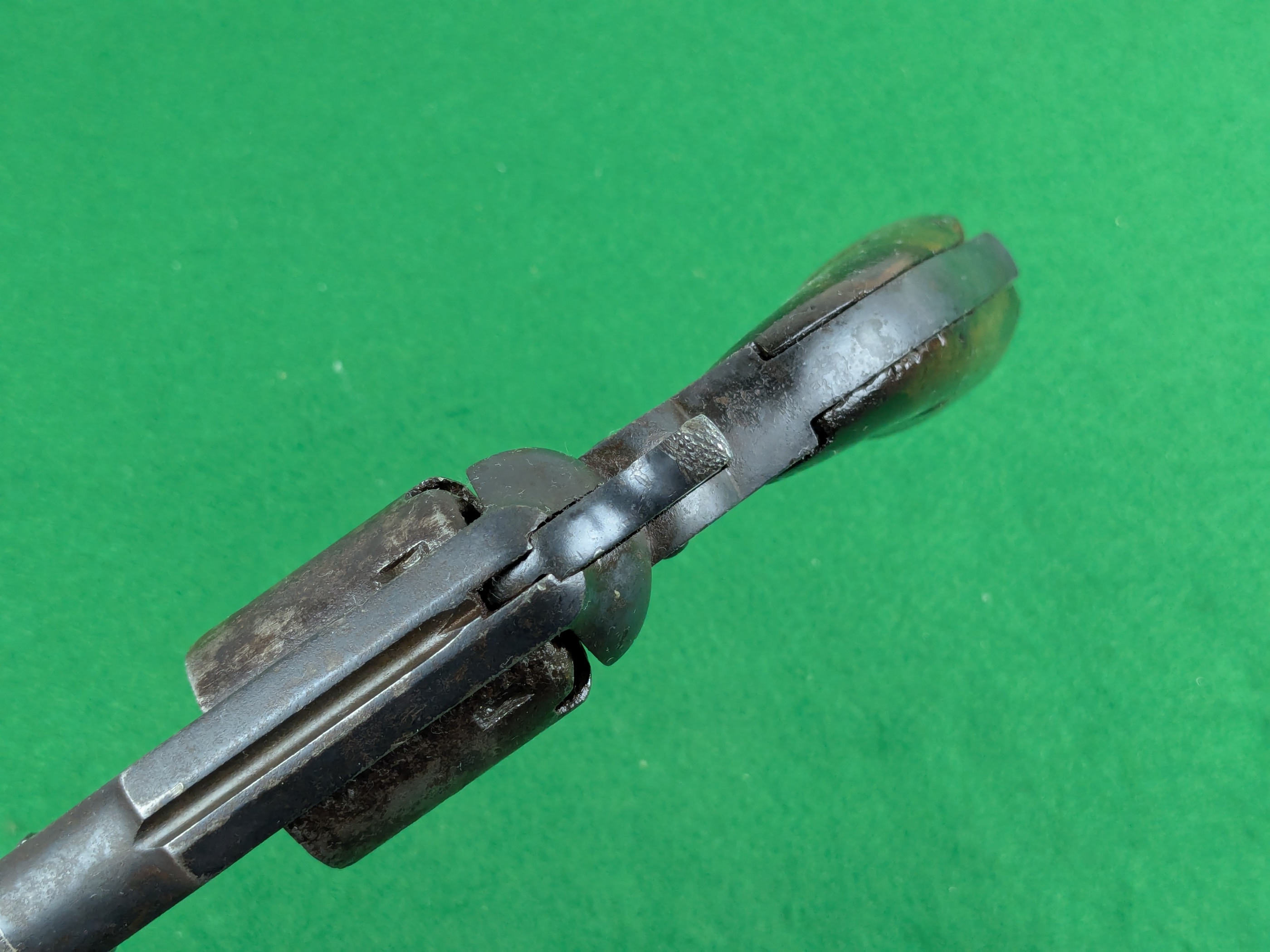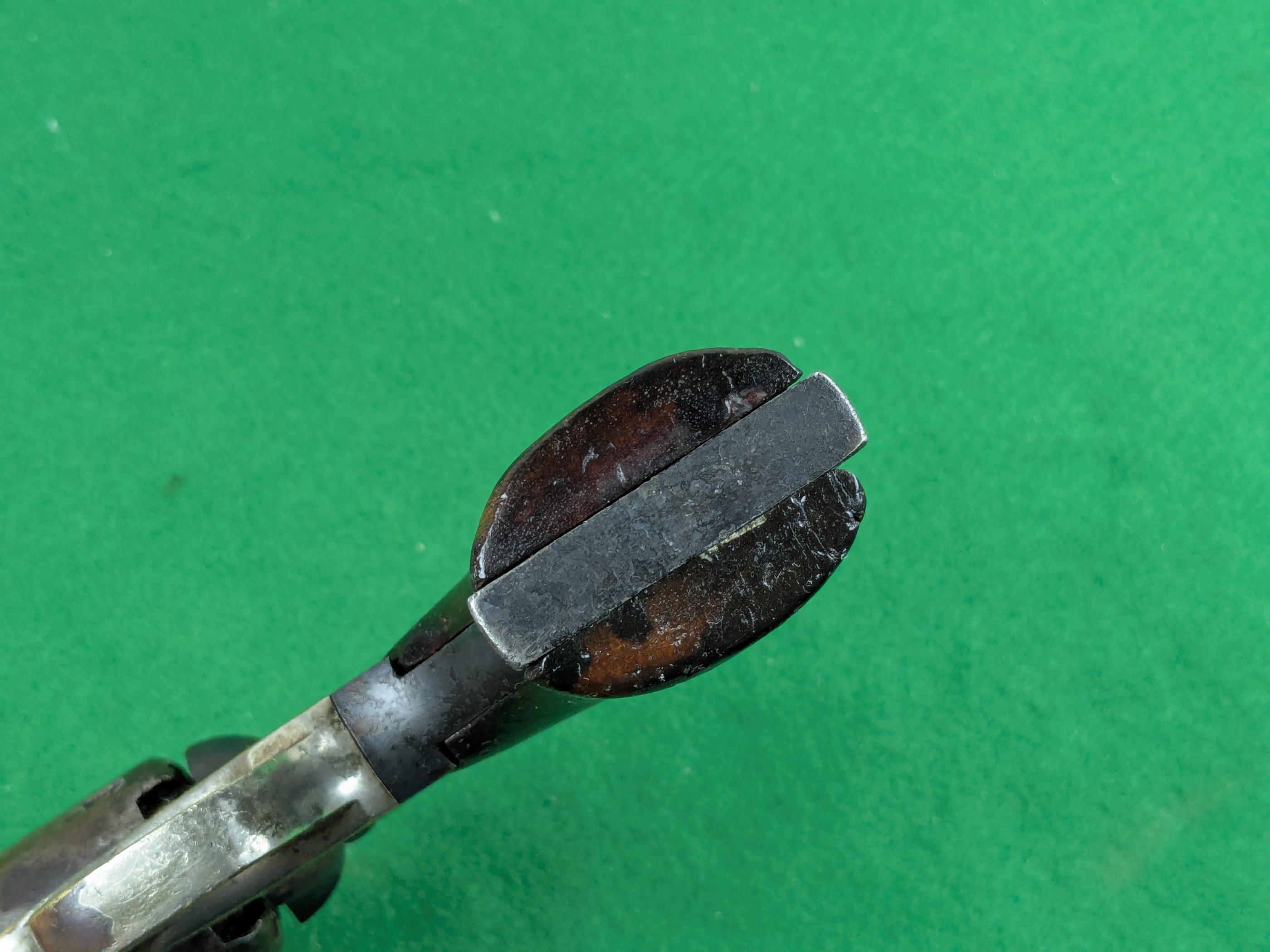 Ett något mer patinerat exemplar för skytte eller projekt. Mekaniskt välfungerande. Fin gång i matningen och låser väl i helspänn. God fjäderspänst. Den har uppenbarligen gåtts igenom mekaniskt. Loppet är inte det bästa men har räffling kvar. Kommer inte att vinna några tävlingar men man kan ha mycket nöje med denna äkta västern revolver. En åtråvärd modell i trevlig mellanstorlek.