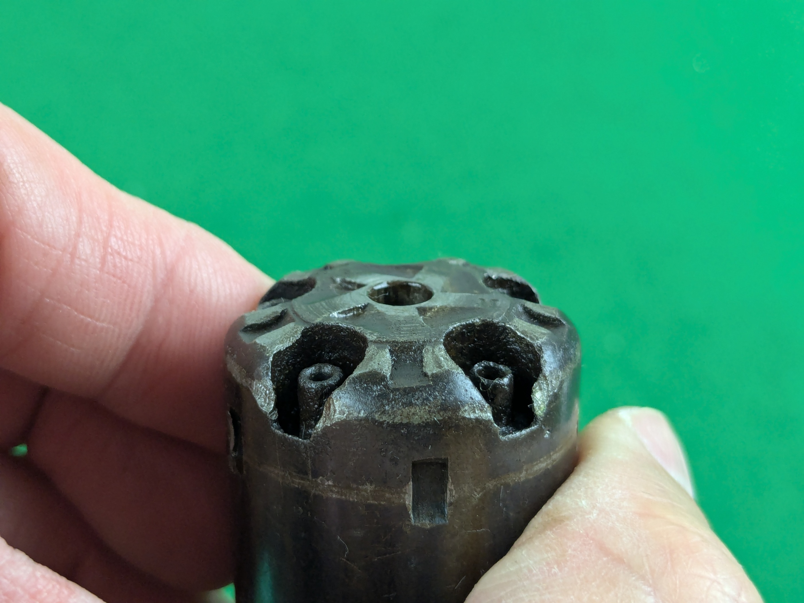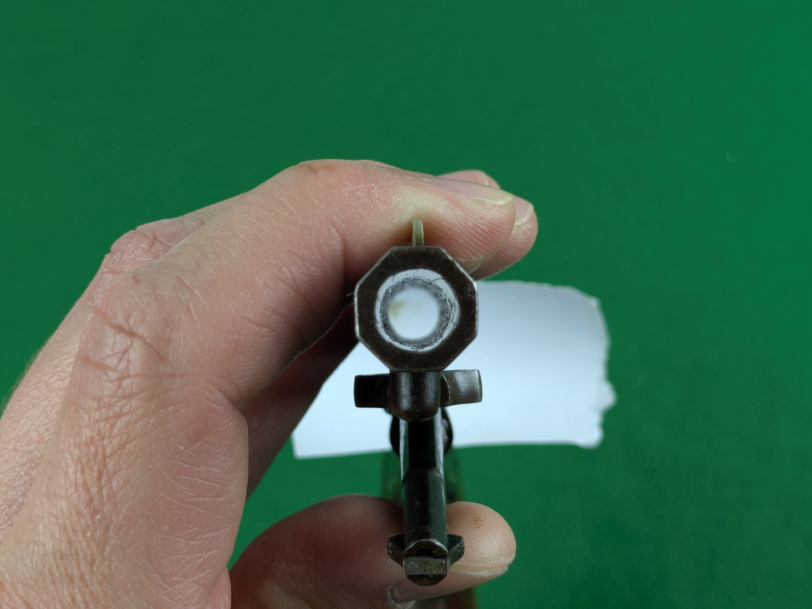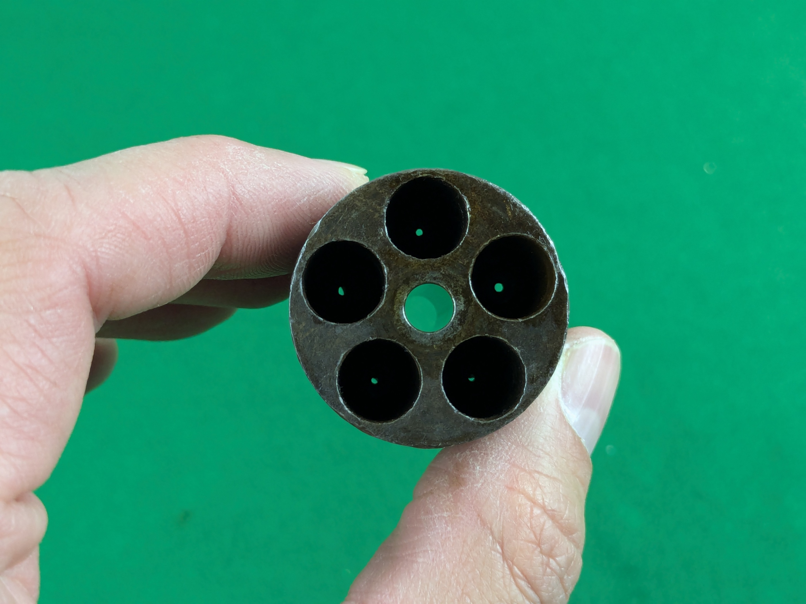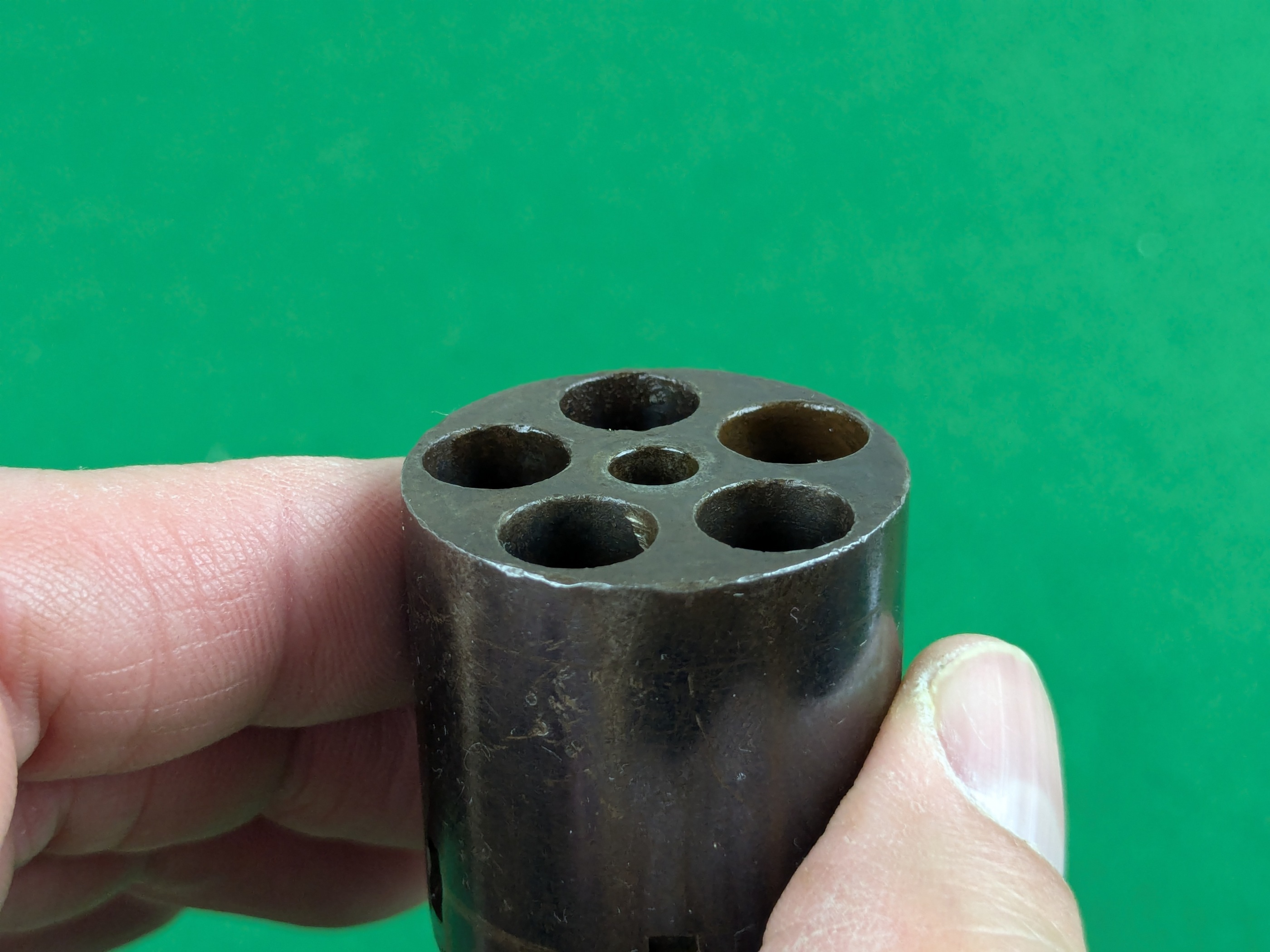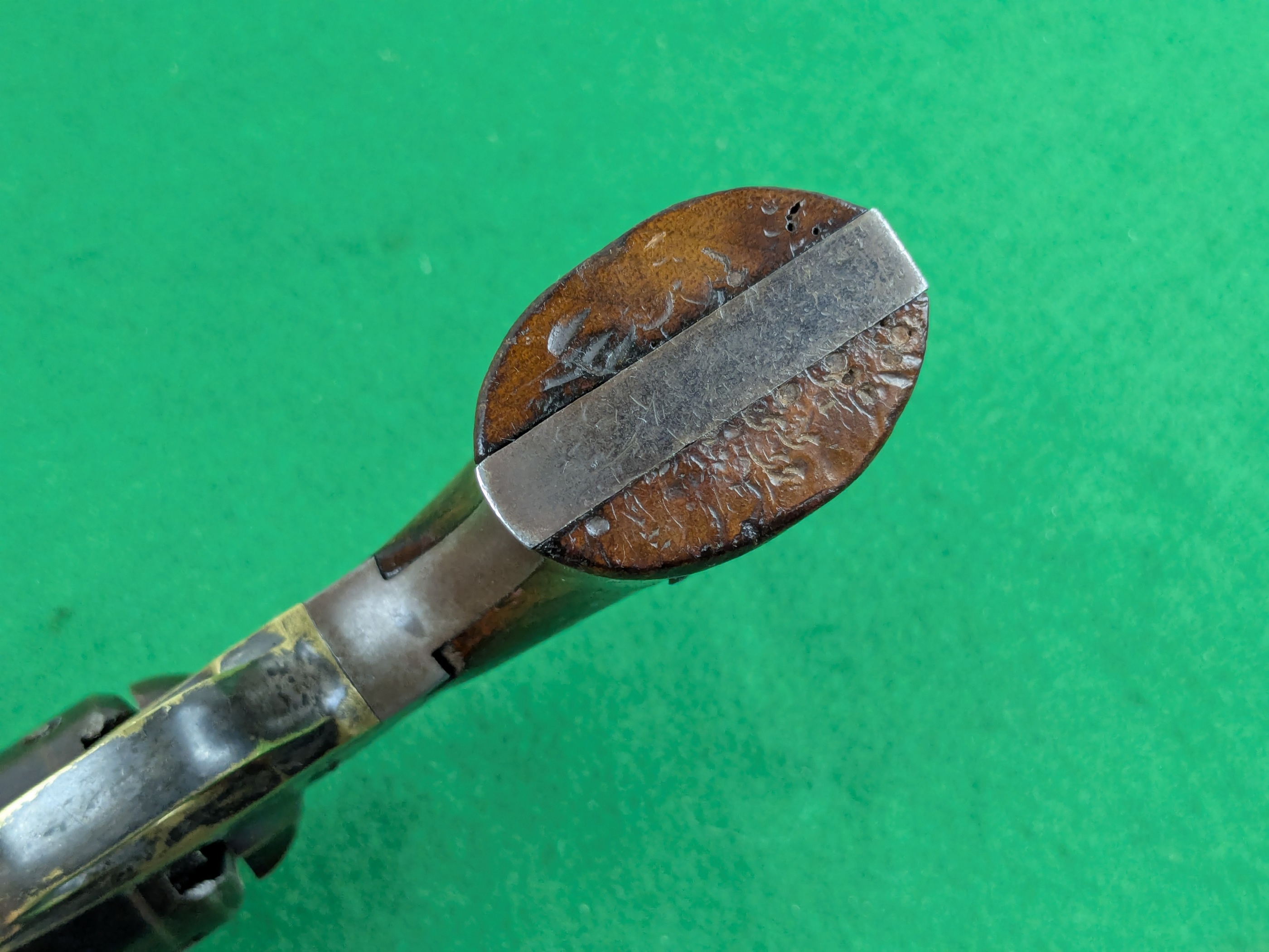 Pipans längd på detta exemplar är 5-1/2". Trumma för fem skott i kaliber .36". Single-action