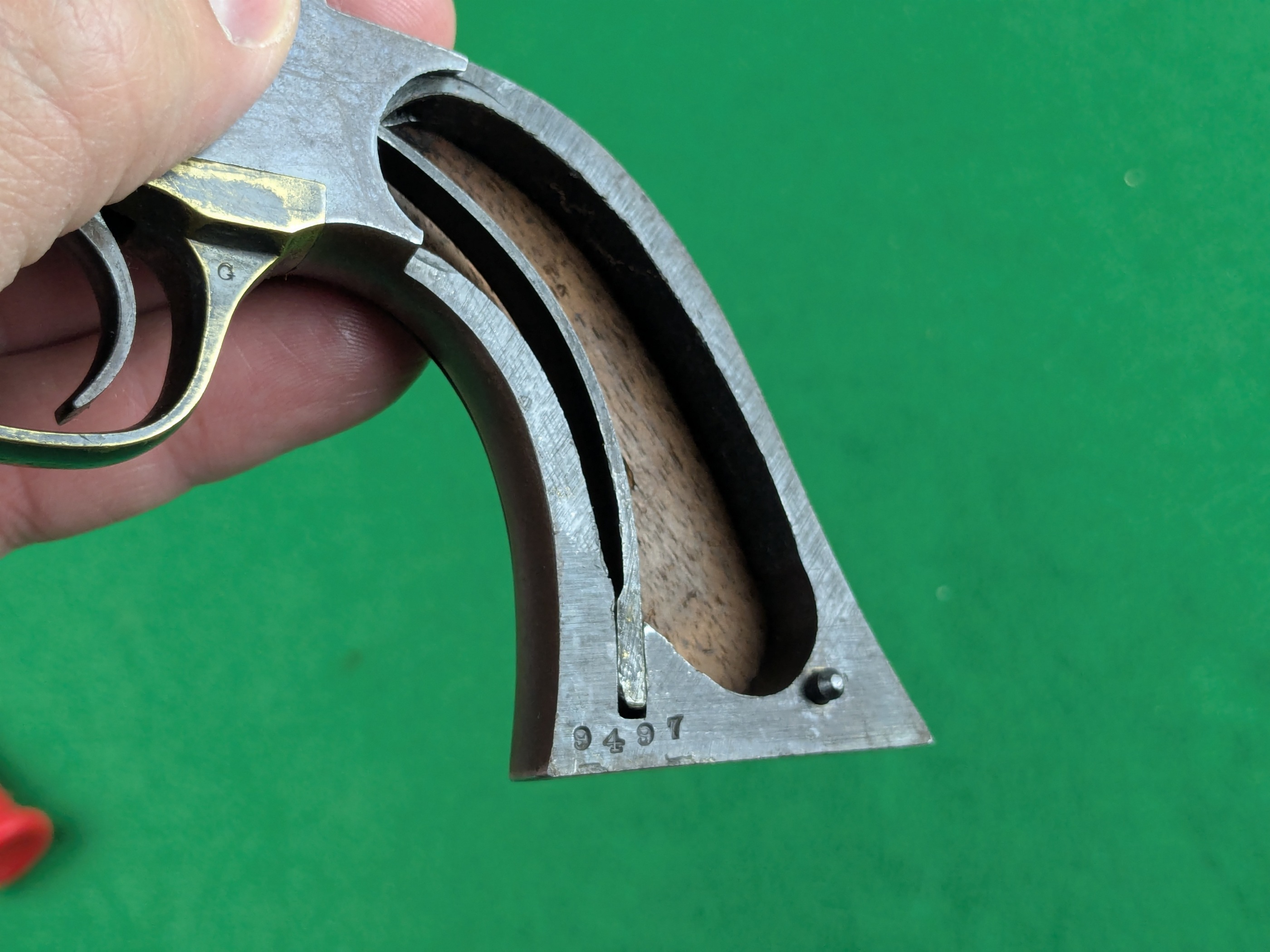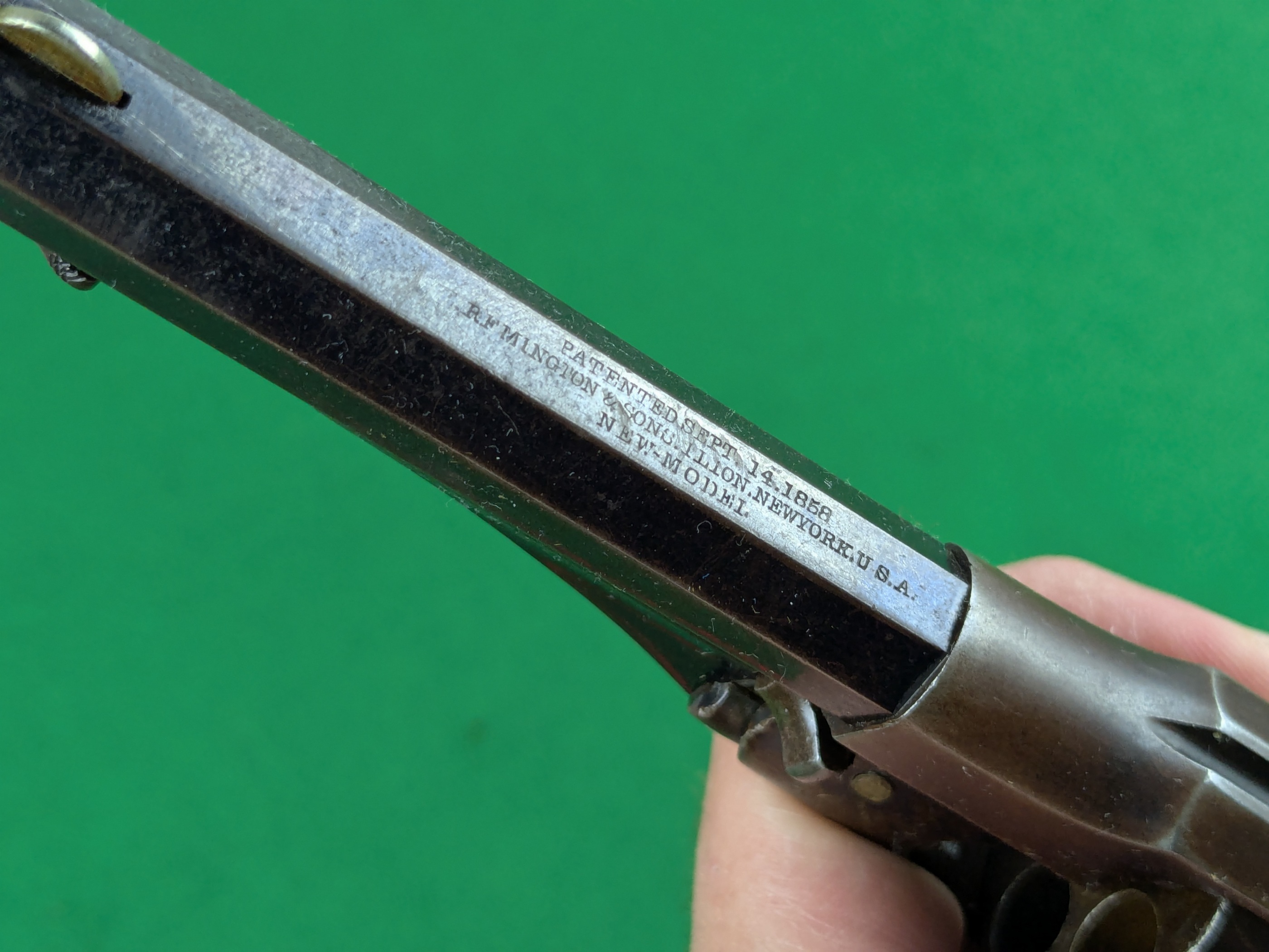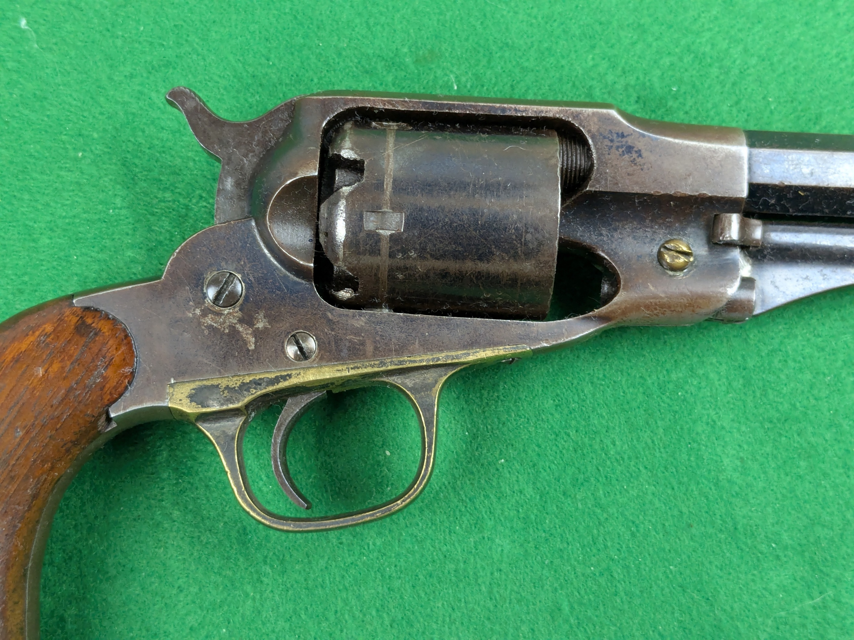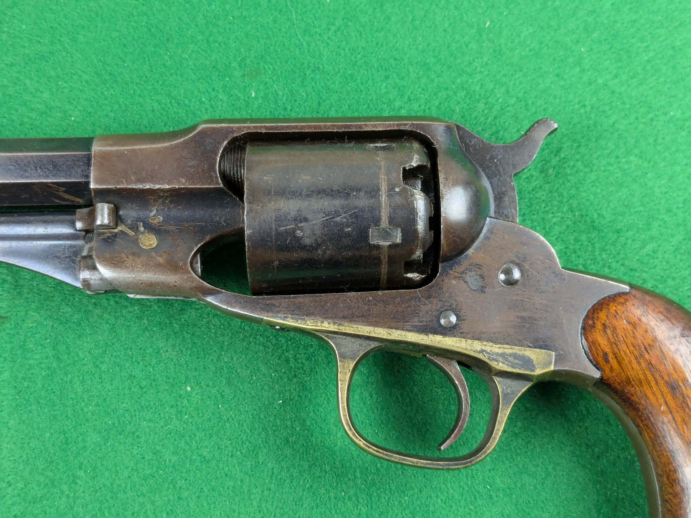 Remington New Model Police Revolver med serienummer 9497. Tillverkad under andra halvan av 1860-talet av E. Remington & Sons i Ilion, New York State.