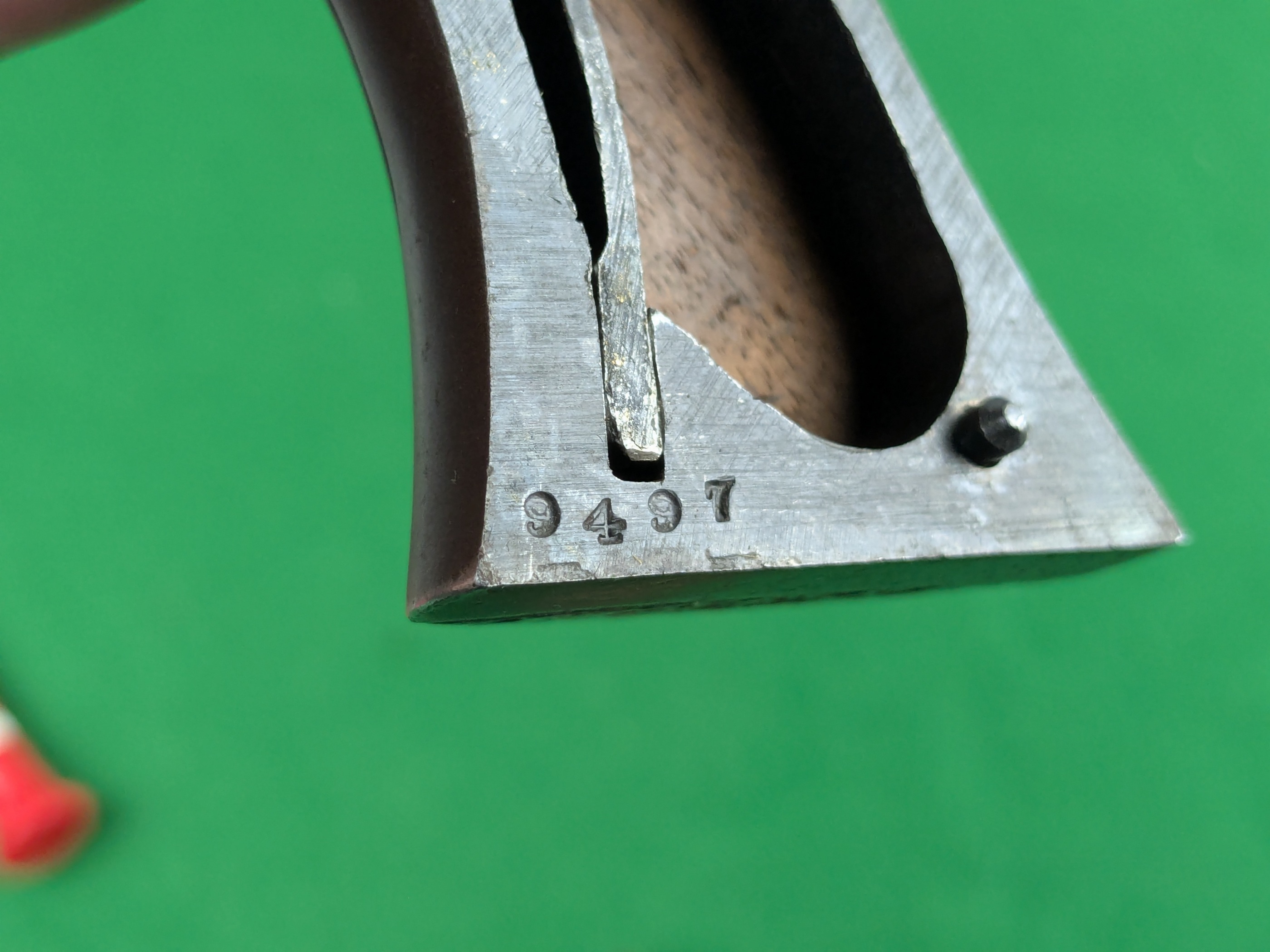 Man kan se en tydlig treradig pipadress och flertalet serienummermärkningar. Exemplaret anses nummerriktigt. Loppet har genomgående räffling som delvis är blankt, delvis ytligt patinerat.