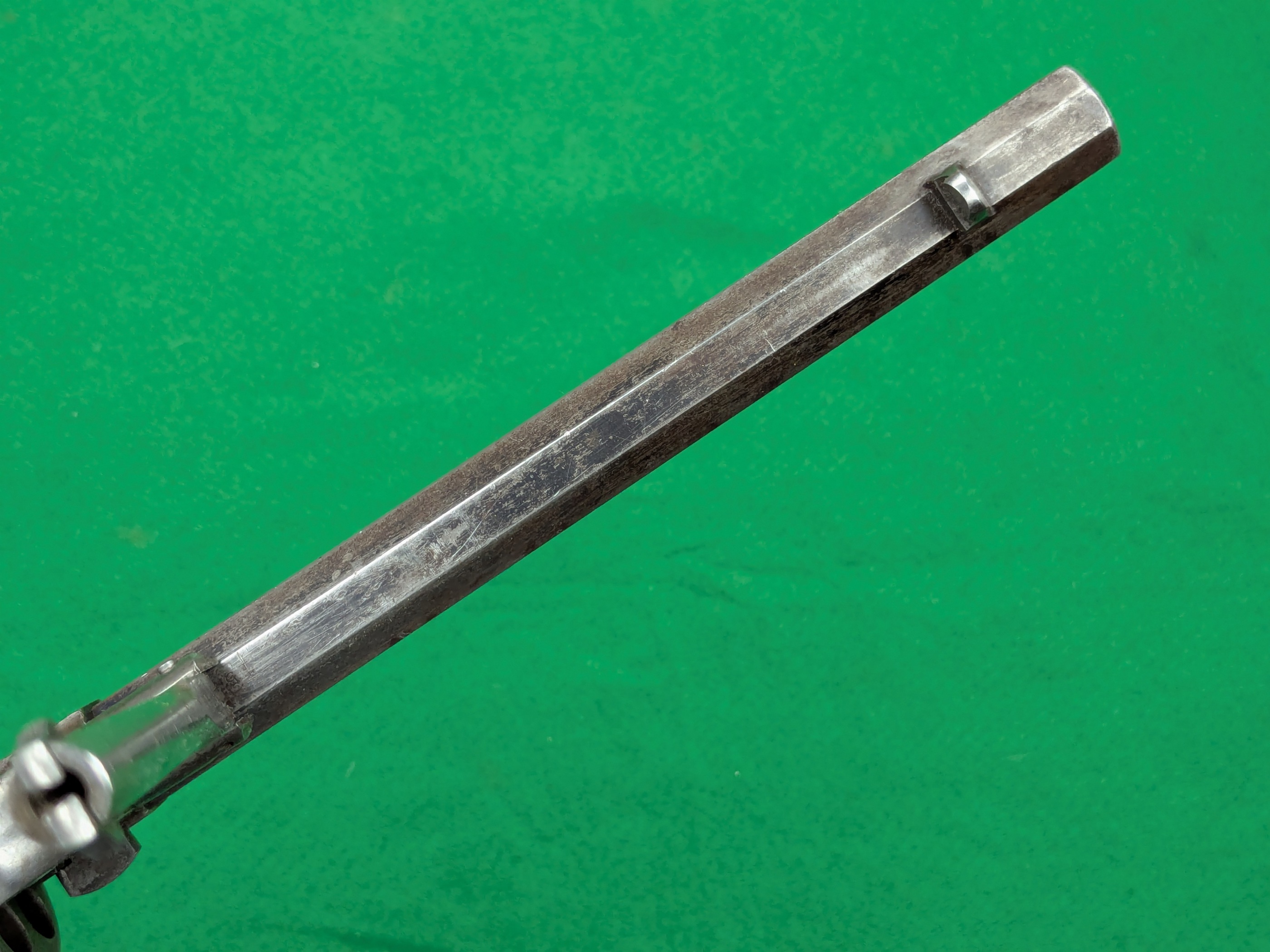 Revolvern har överlag väldigt fina ytor som inte är hårt putsade. Kanterna är skarpa och märkningar tydliga. Trumman har det mesta av sin tunna trumscen bevarad. En viss blånering finns kvar på pipan, särskilt undertill. Varbygeln har även försilvring kvar i sina mer skyddade partier. Nummerriktig.