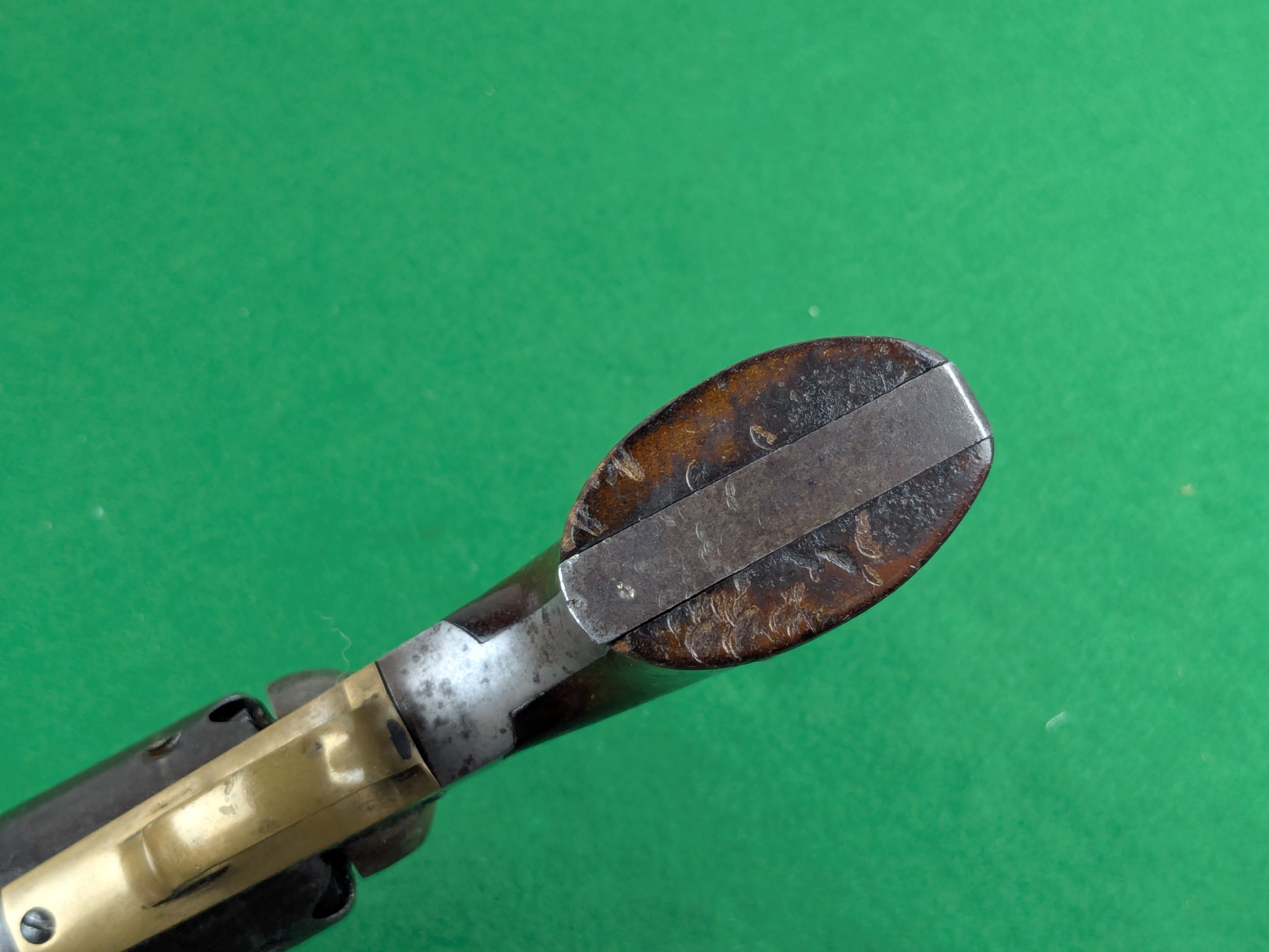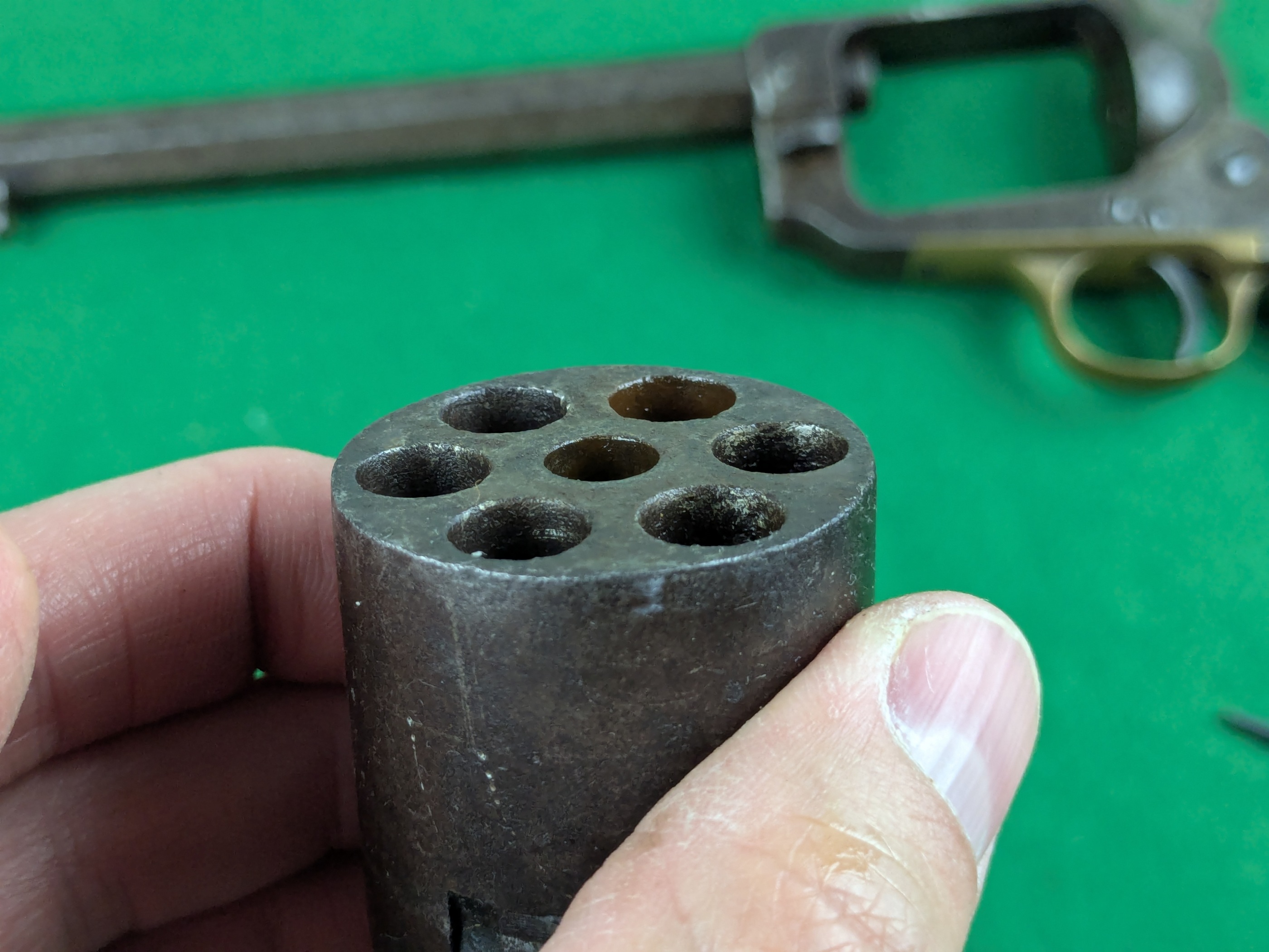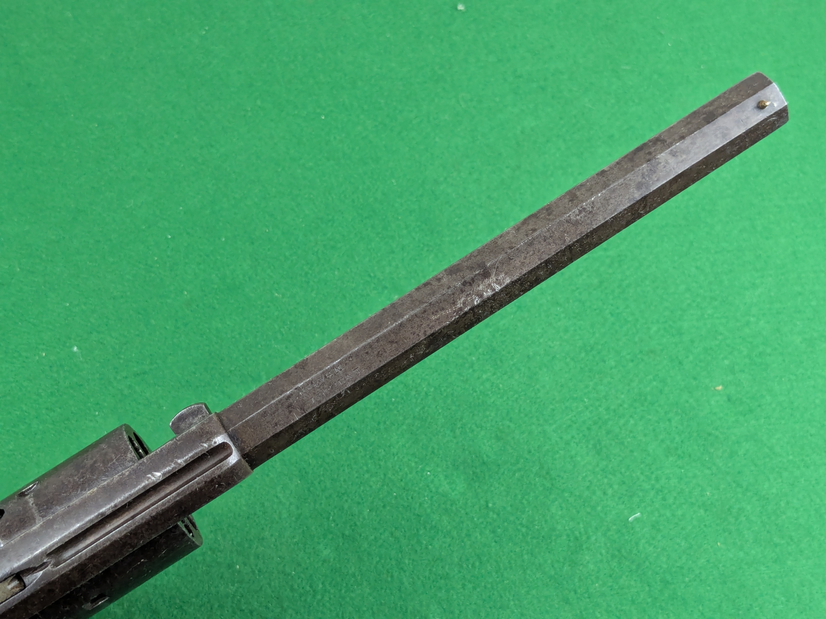 Piplängd 7.5" med trumma för sex skott i kaliber .36". Single-action.