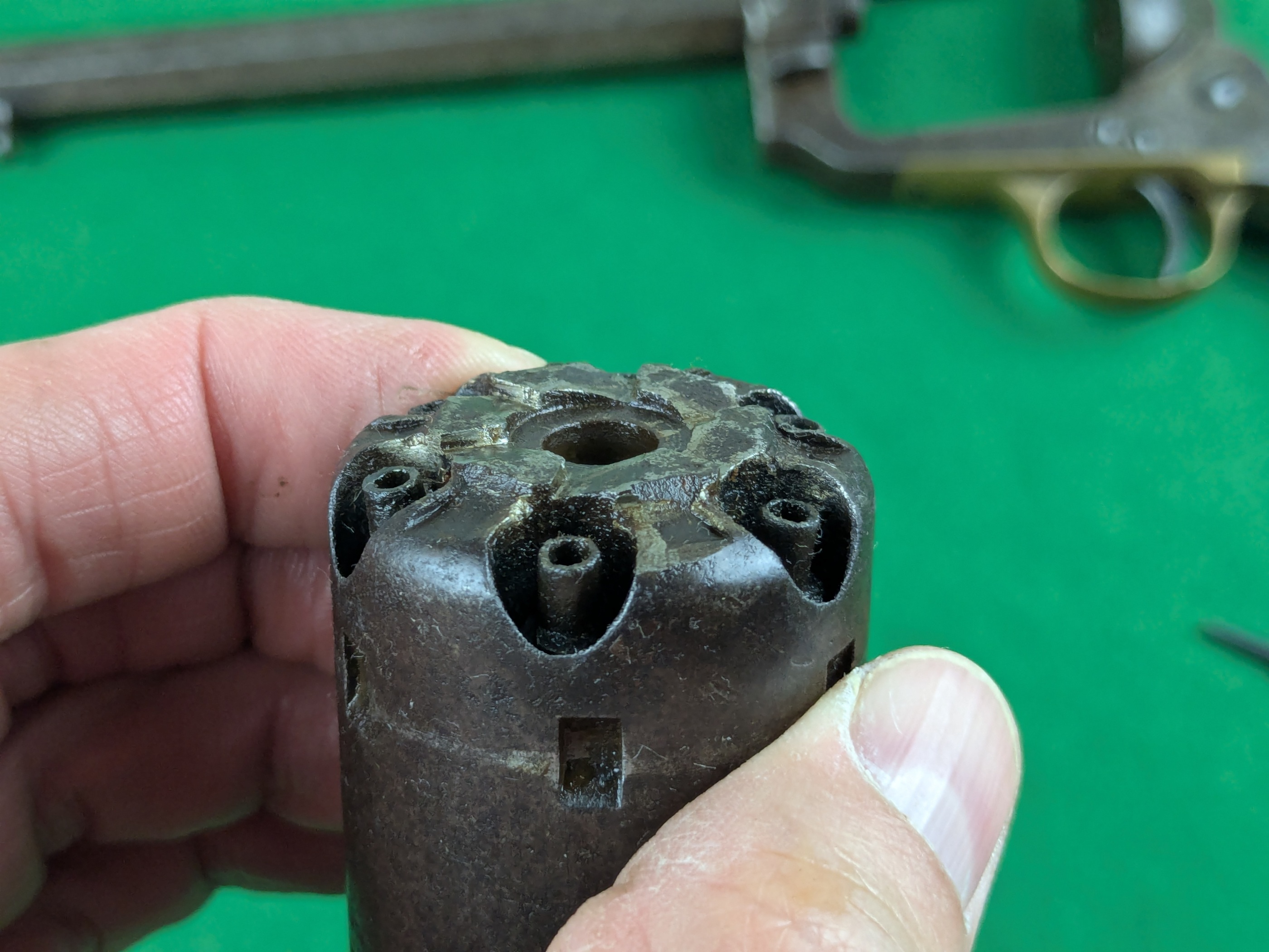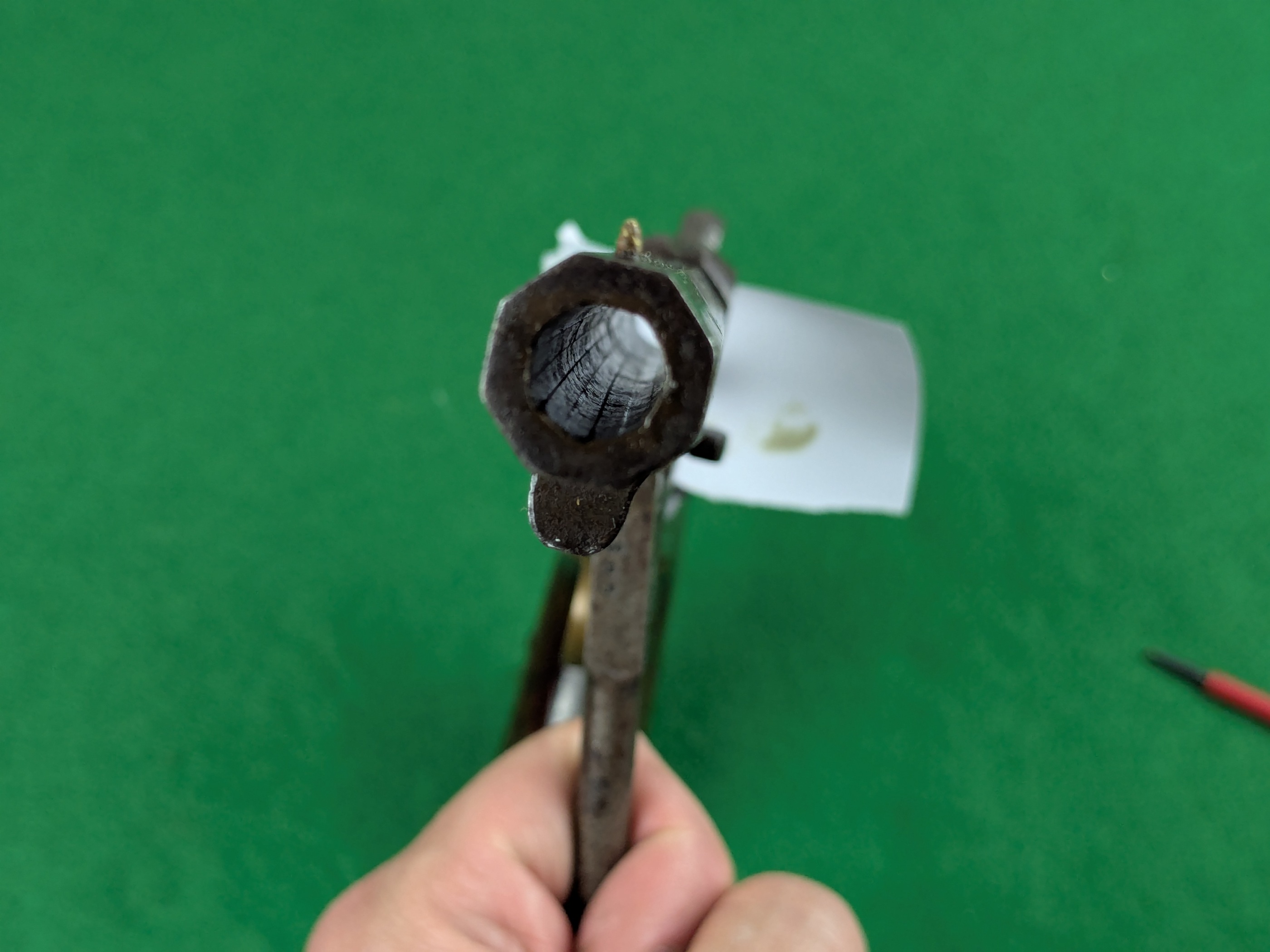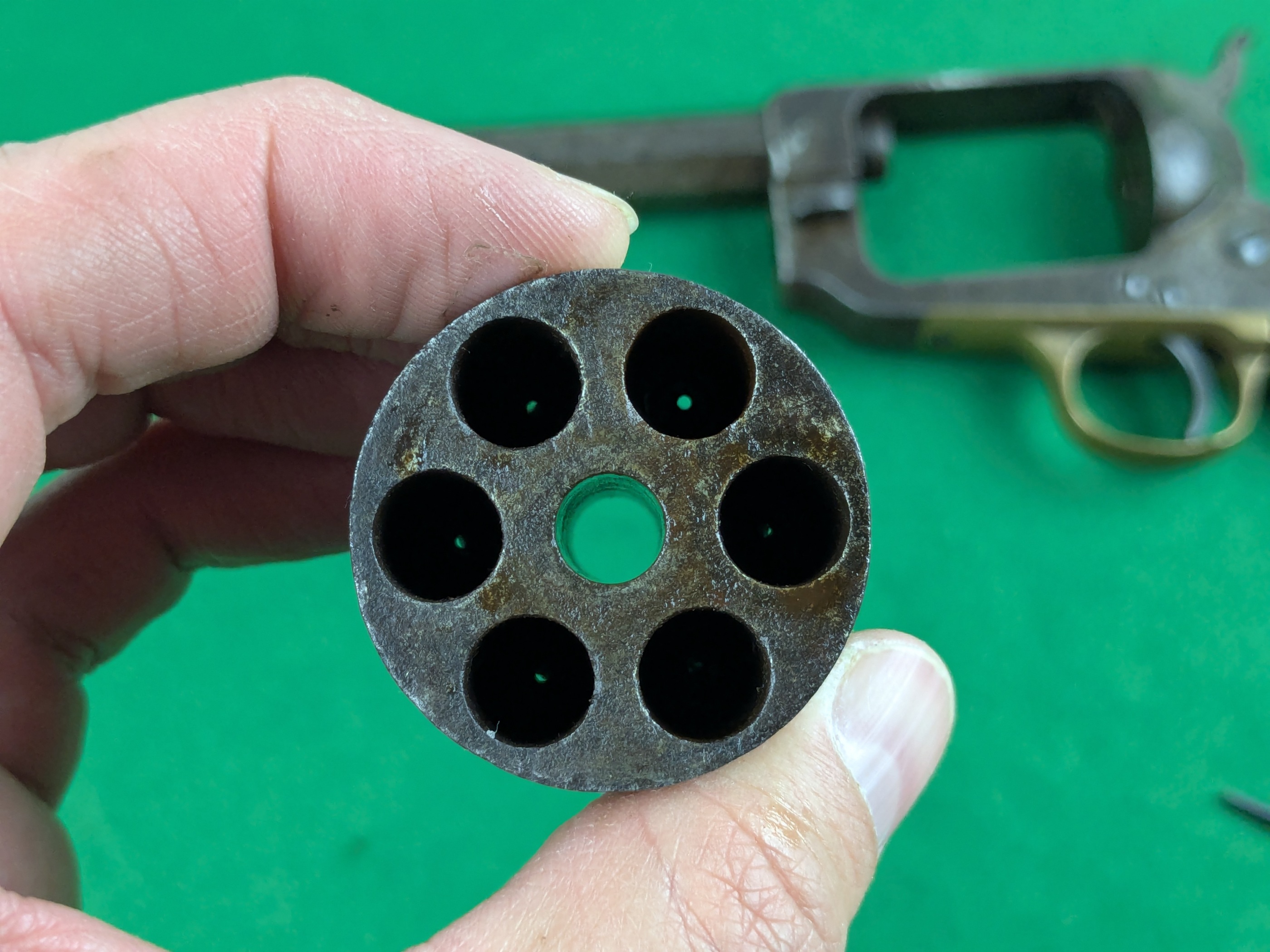 Piplängd 7.5" med trumma för sex skott i kaliber .36". Single-action.