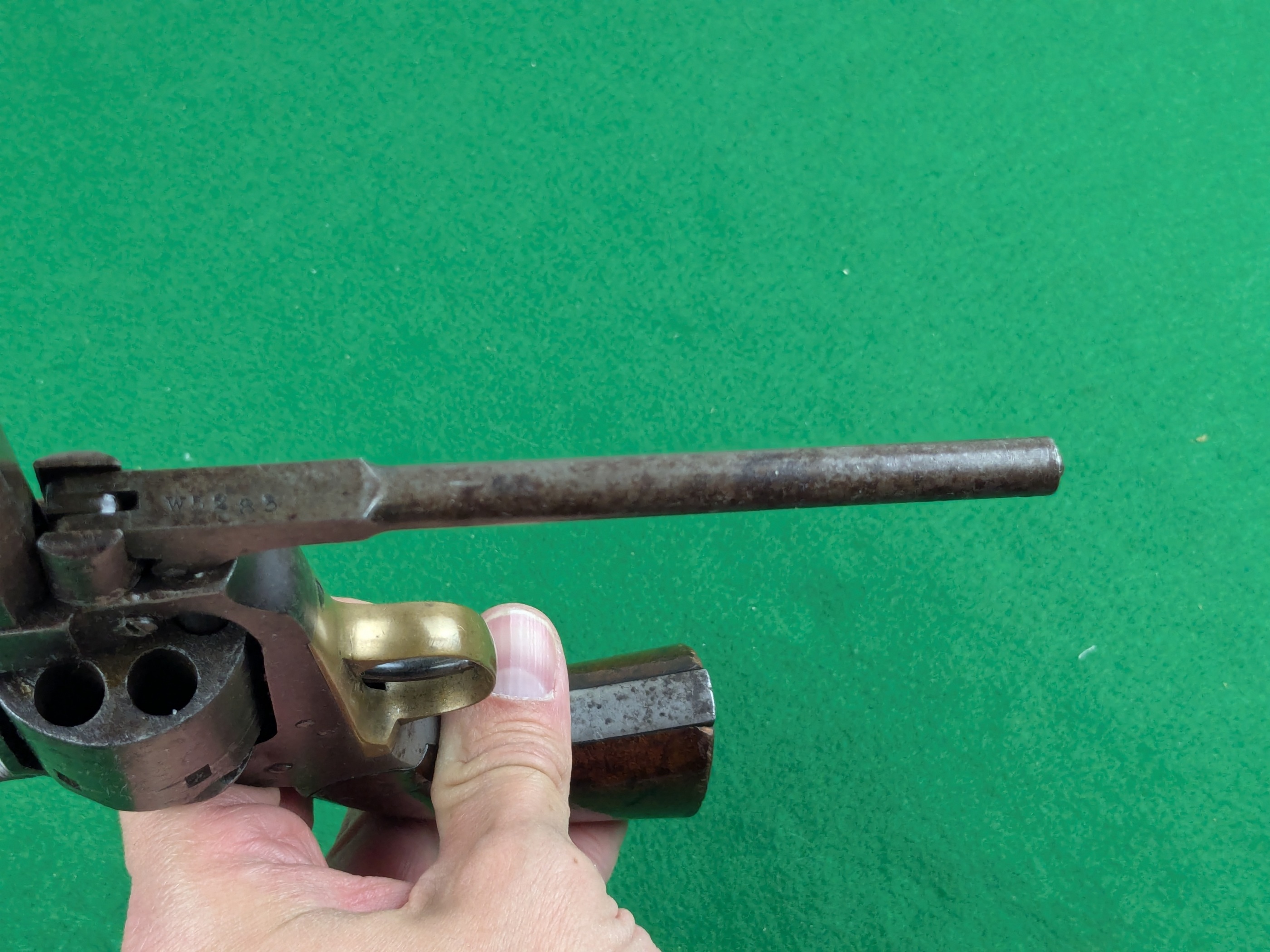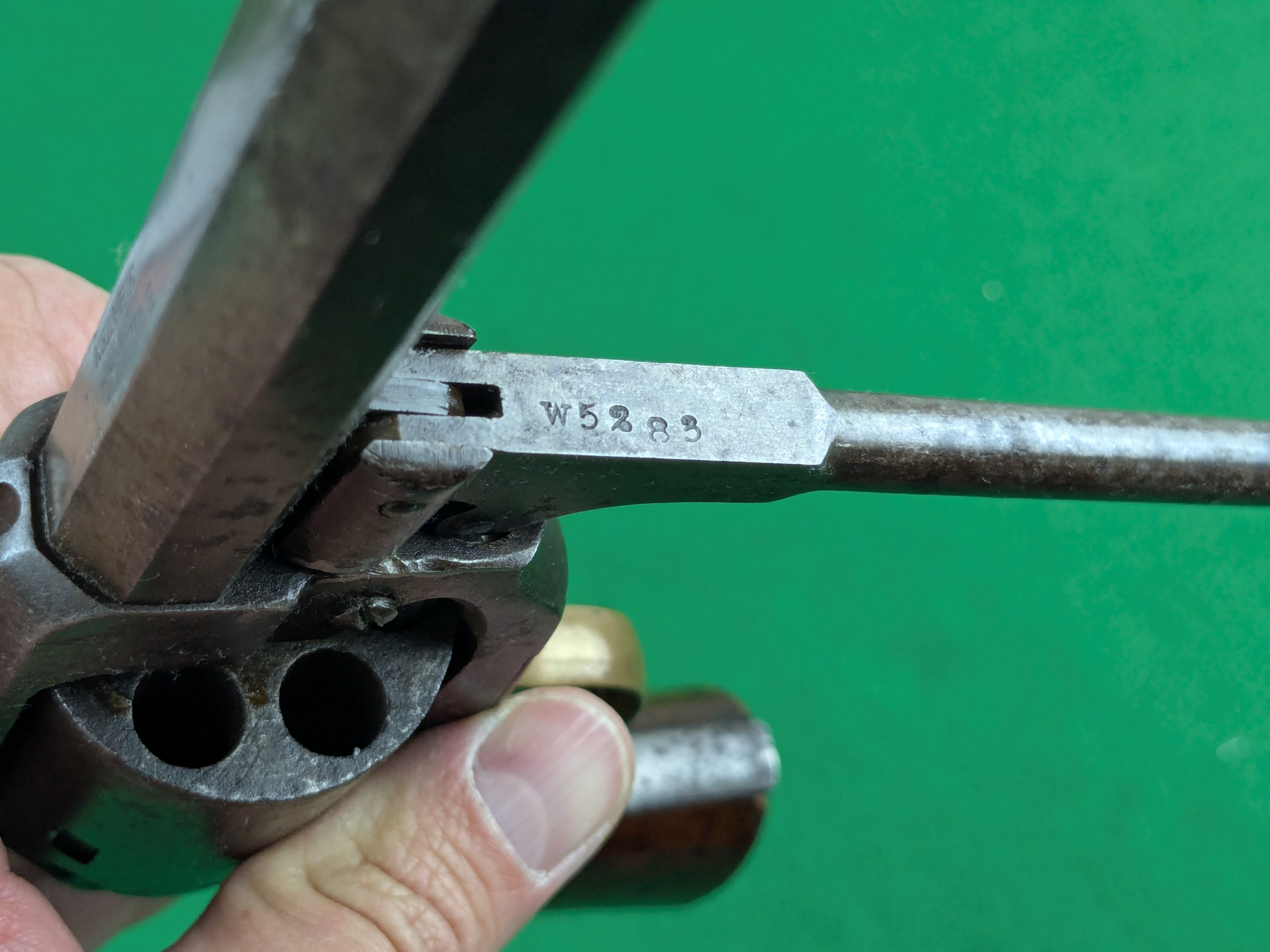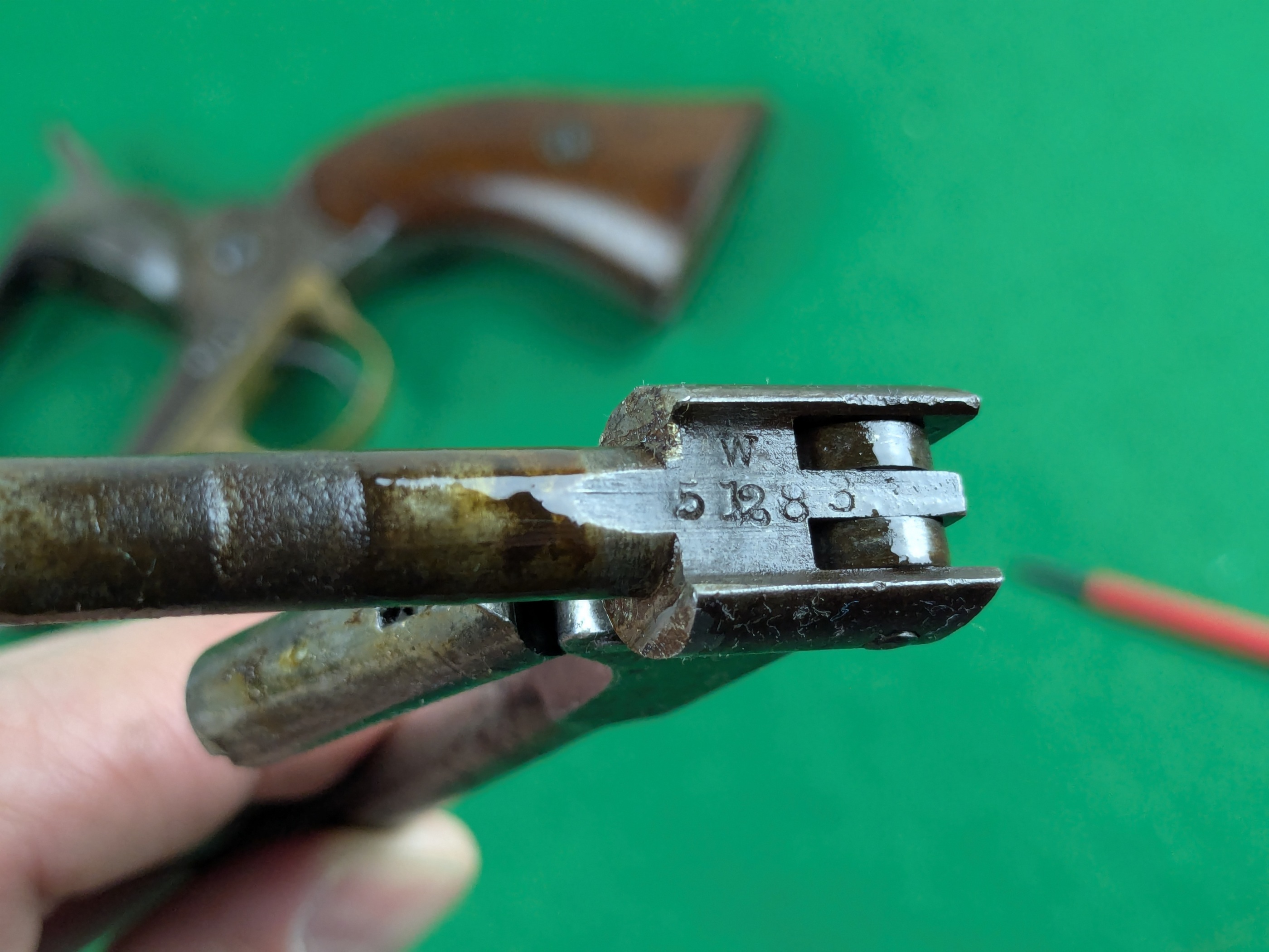 Whitney Navy Model Revolver med serienummer 5283. Tillverkad under tidigt 1860-tal E. Whitney i New Haven, Connecticut.